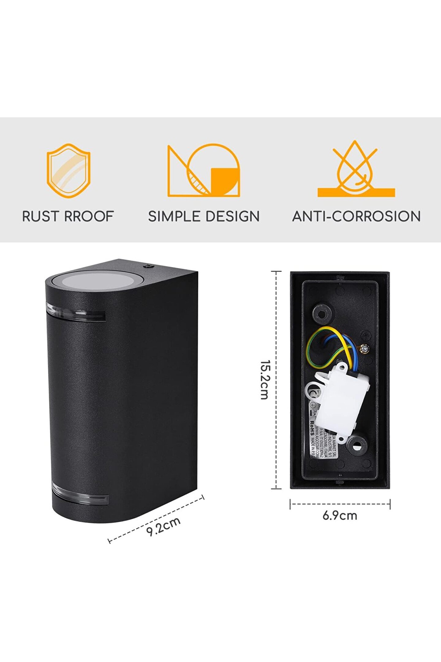 Ürünümüz elektrik kaynağına bağlı olarak çalışır. Alüminyum metaldir. Gu10 Duyludur. İki adet 7 Watt Gu10 Duy 3000 Kelvin, gün ışığı led ampul fiyata dahildir. IP54 Koruma sınıfındandır. Yağmur, kar ve güneş gibi mevsimsel şartlardan etkilenmez. İç ve dış mekan, bahçe, balkon, salon, yatakbaşı, kapı girişi, villa dış cephe gibi tüm yaşam alanlarında kullanıma uygundur. Duy seramiktir. Ürün Ölçüleri: 15 Cm yükseklik, 7 Cm genişlik, 9 Cm Derinlik. Paket İçeriği: Bir adet çift yönlü metal kasa aplik ve iki adet gu10 Duy led ampul