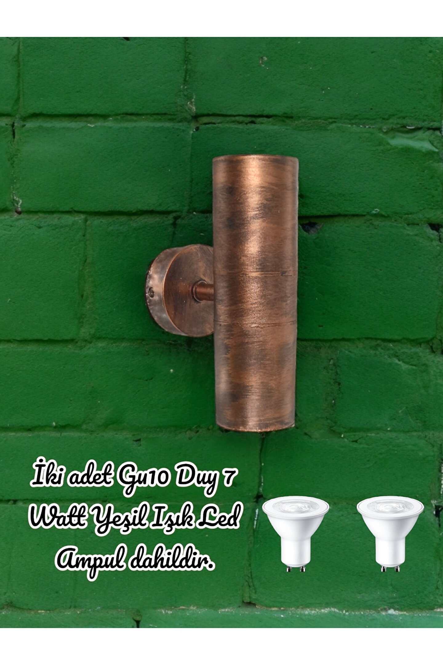 2 adet 7 watt gu10 duy yeşil ışık ampuller dahil çift yönlü antik eskitme armatür bilgileri Ürünümüz elektrik kaynağına bağlanarak çalışır. ; Kesinlikle pilli, şarzlı, güneş enerjili vs. ; Değildir. ; Birinci kalite abs plastik gövde el işçiliği ile boyanarak eskitilmiştir. ; Max 2 x 7 watt gu10 duy led, ıp 65 koruma sınıfı, iç ve dış mekan aplik. ; Yağmur, kar ve güneş gibi mevsimsel şartlardan etkilenmez. ; Dolgun ve şık görünüm. ; Ürün ölçüleri: Yükseklik 18,6 cm, dürbün mercek çap: 6 cm, derinlik: 11,5 cm. ; Montaj aparat çapı: 7,2 cm. ; Paket içeriği: Bir adet bakır eskitme çift yönlü armatür ve iki adet 7 watt gu10 duy yeşil ışık led ampul;