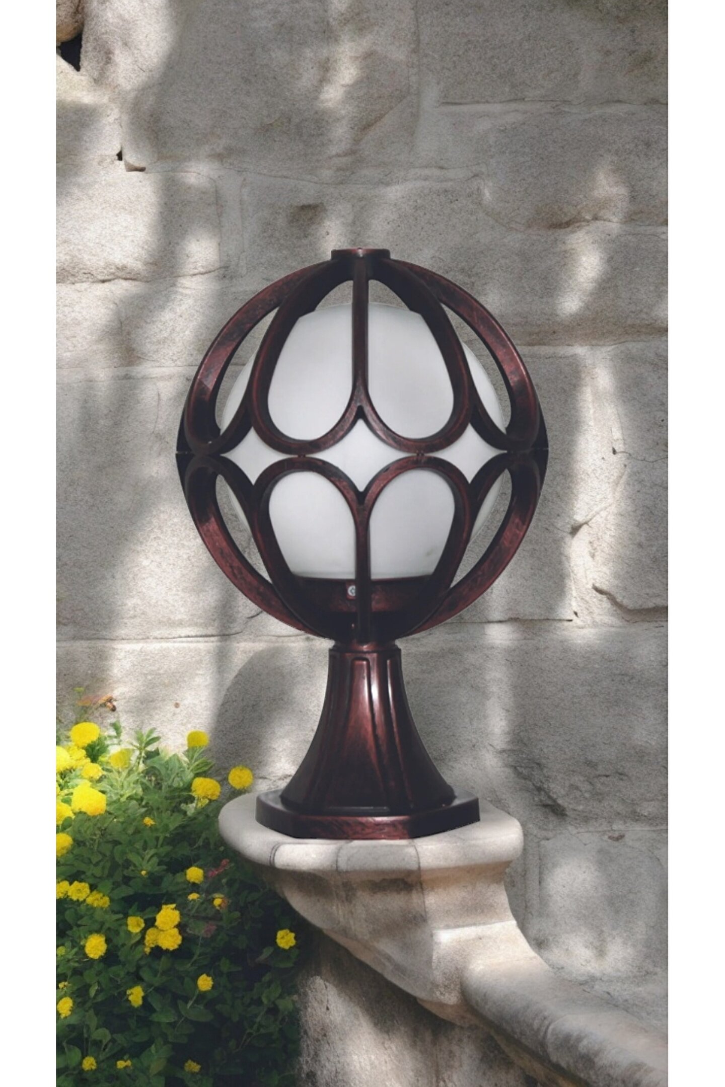 Beyaz Işık 10 W. Led Ampullü Bakır Eskitme Bahçe Duvar Aydınlatma Armatürü Set Üstü Plastik Aplik