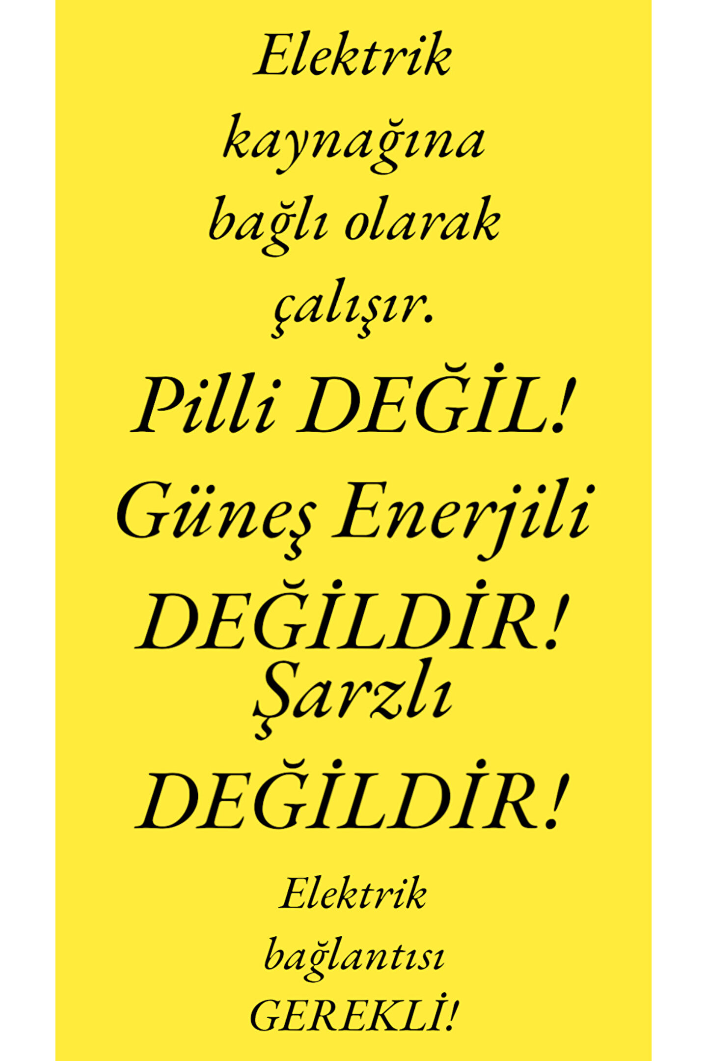 Ürünümüz elektrik kaynağına bağlı olarak çalışır. Yani pilli, şarzlı ya da güneş enerjili değildir. Birinci kalite sert plastikten üretilmiştir. IP44 Koruma sınıfından, yağmur, kar ve güneş gibi mevsimsel şartlardan etkilenmez. E27 Duy led ampul takarak kullanabilirsiniz. Paket içeriğinde ampul yoktur. Bahçe, balkon, tuvalet, banyo, teras, kamelya, bungalov, kapı girişi gibi tüm alanlarda kullanıma uygun şık bir üründür.