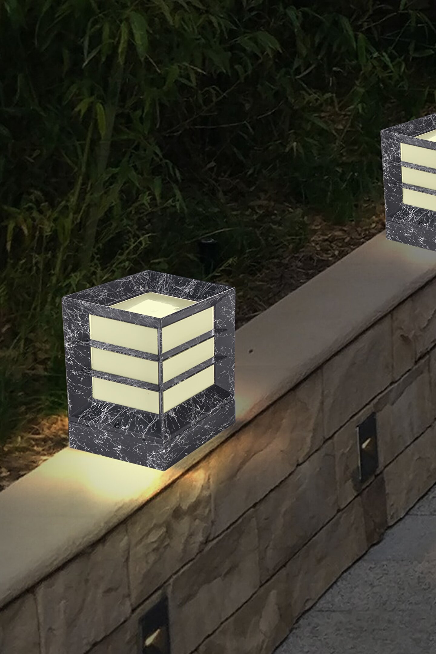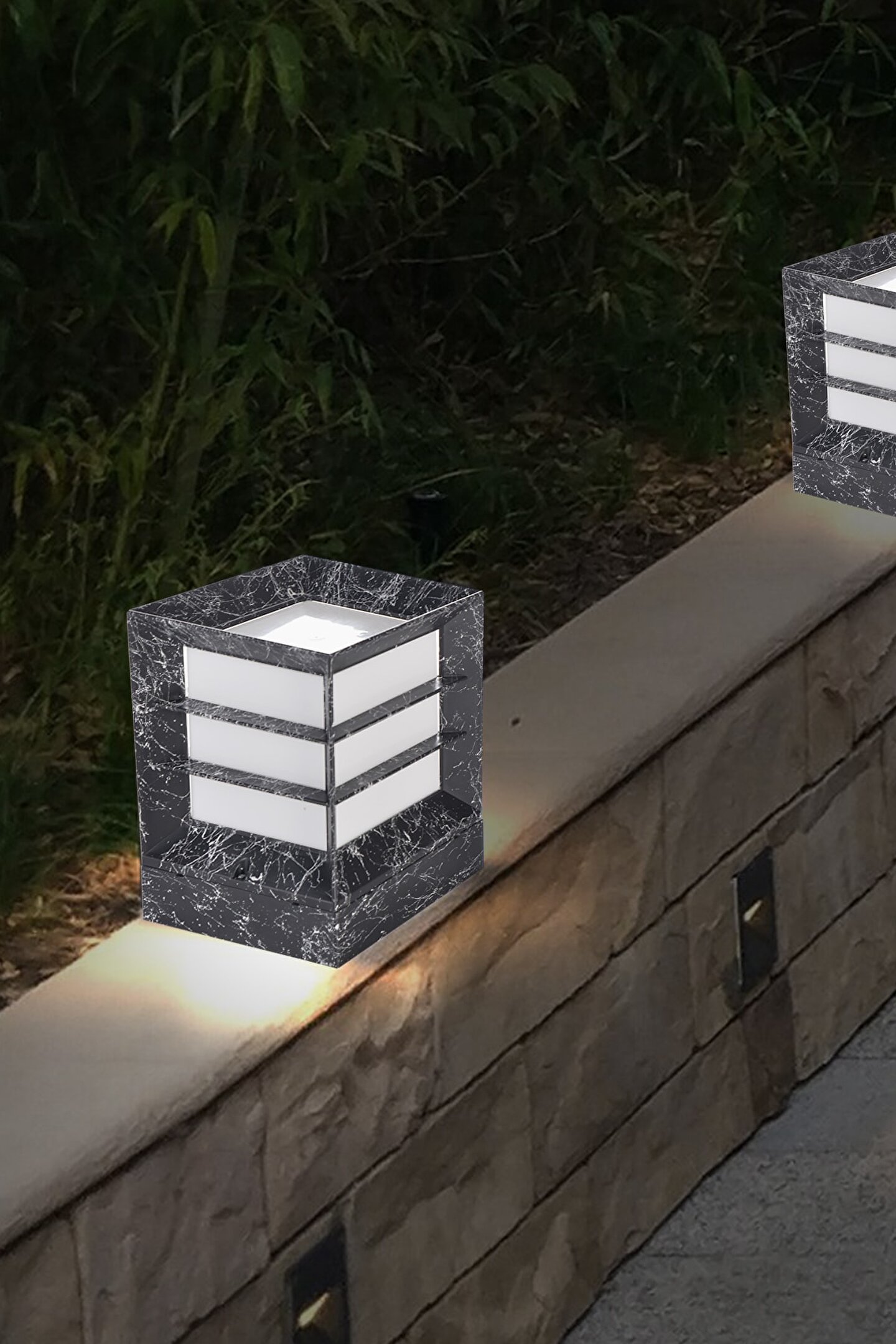 fullreyon Mermer Desen Plastik 1. Sınıf Kare Küp Bahçe Aydınlatma Armatürü