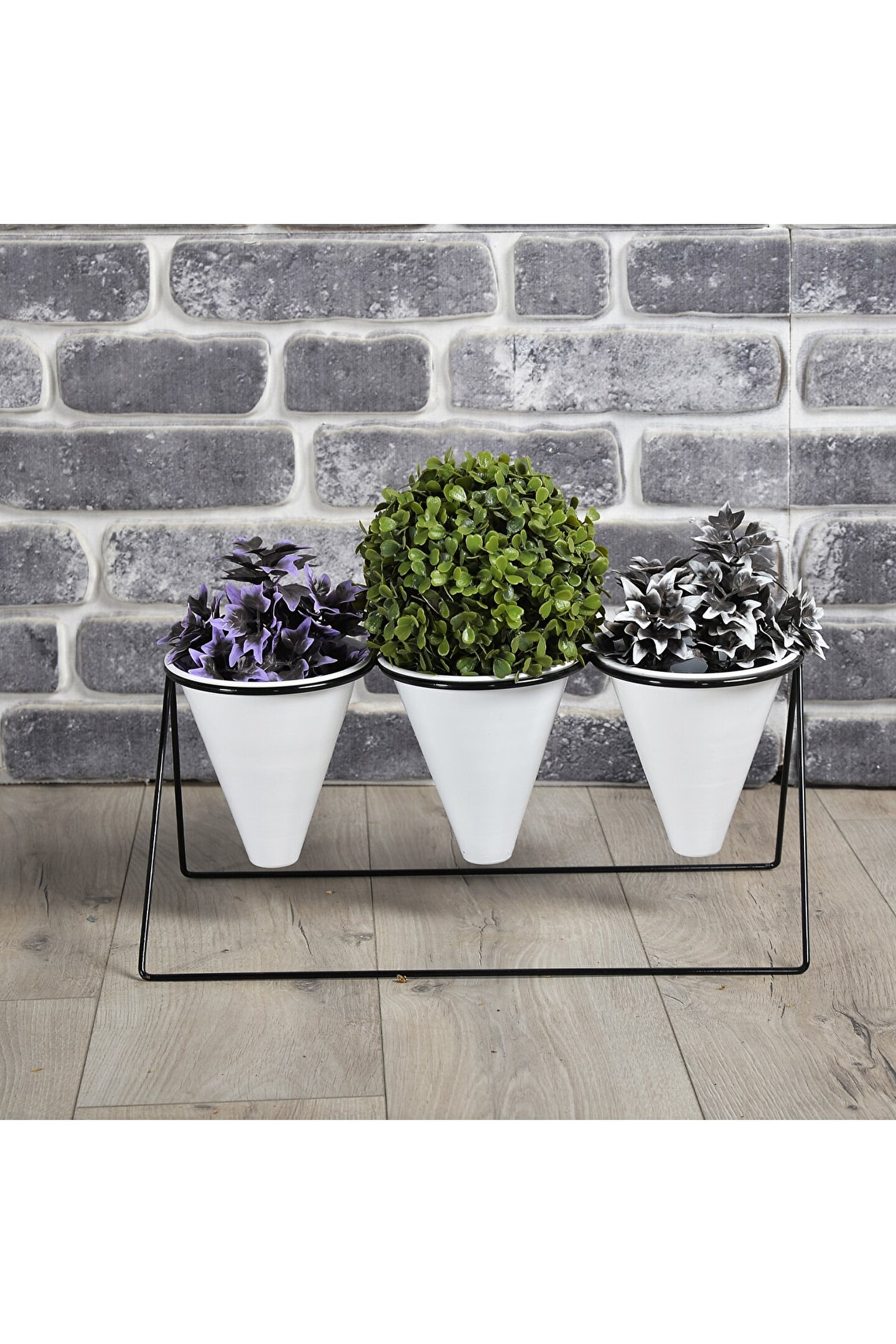 fullreyon Vıpclass 3 Saksılı Metal Çiçek Standı - Saksılar Dahil - Vsb