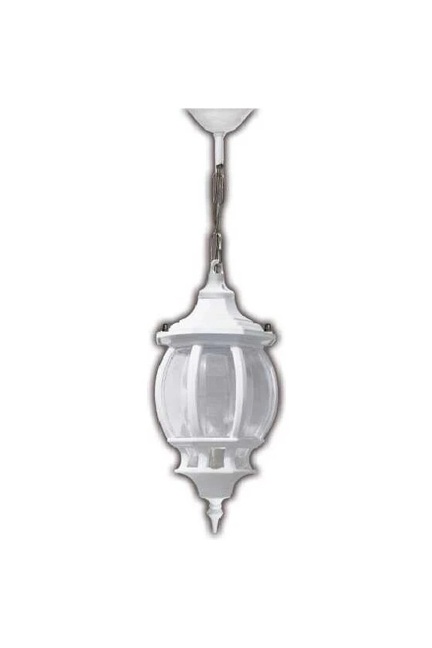 Sekizgen zincirli beyaz fener avize, sarkıt, armatür Ürünümüz elektrik kaynağına bağlanarak çalışır. ; 220v. ; Birinci kalite sert plastikten üretilmiştir. ; Iç ve dış mekan, balkon, teras, kamelya, saçak altı, kış bahçesi gibi tüm alanlarda kullanılabilir. ; E27 duy led ampul ile çalışır. ; Paket içeriğinde ampul yoktur. ; Ürün ölçüleri: Yükseklik 65 cm, çap 20 cm.;