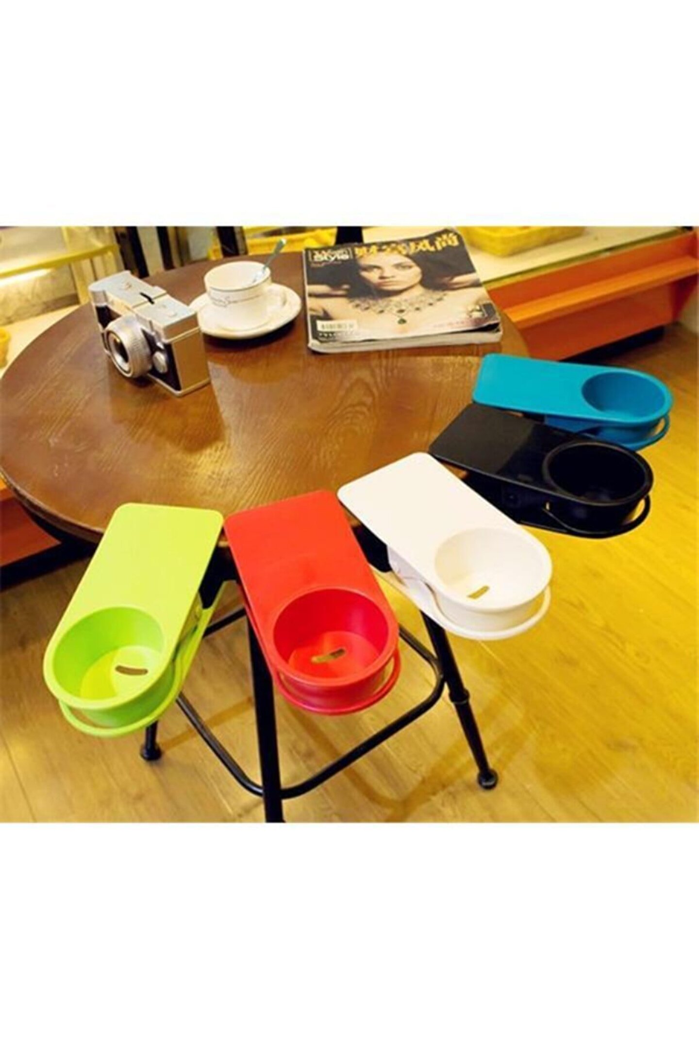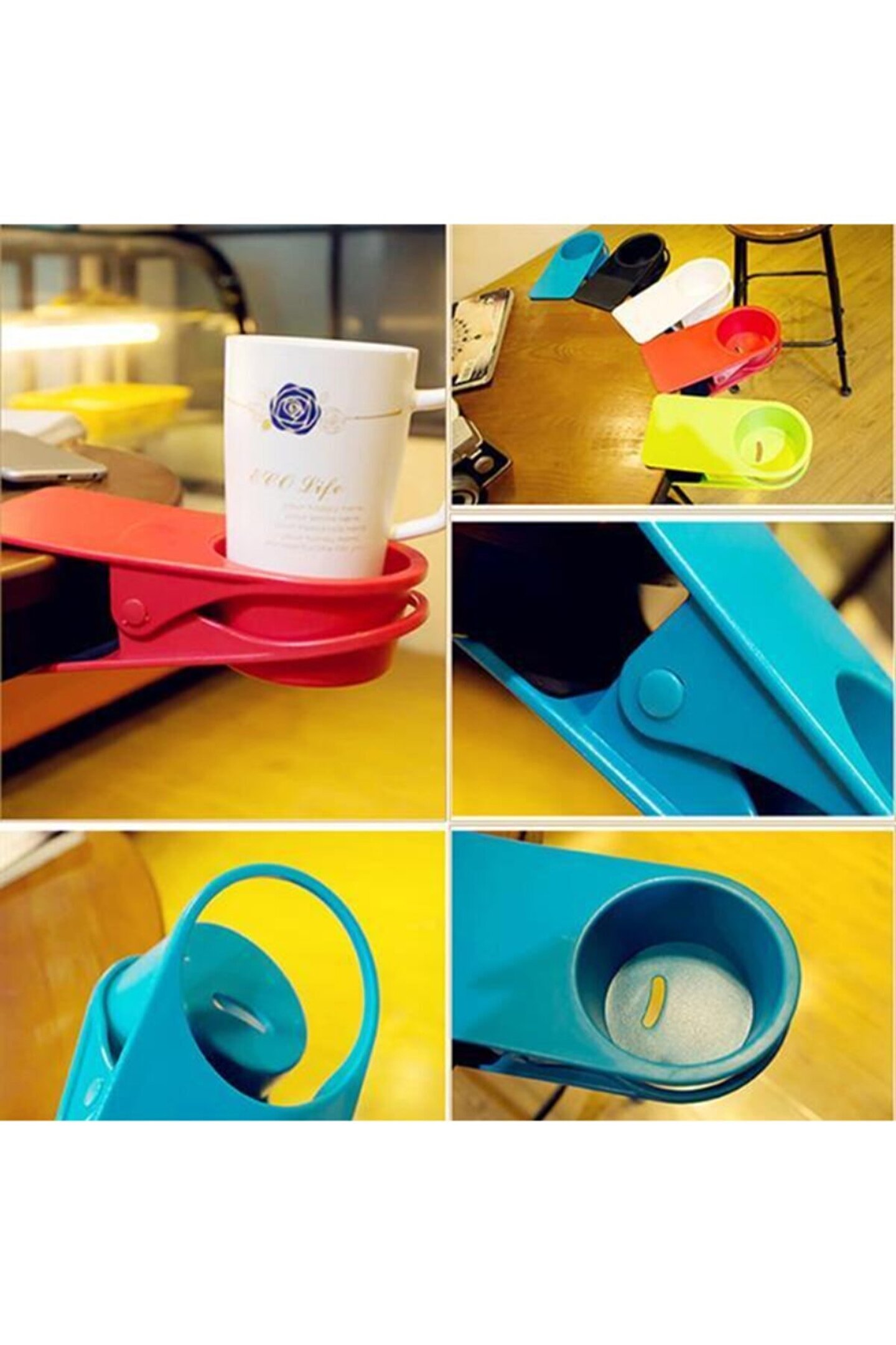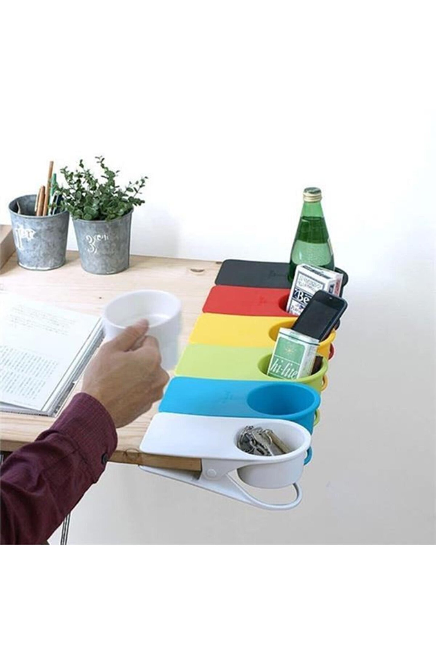 Masanıza, halınıza dökülen içeceklerden şikayetçi misiniz? Islanan evraklarınız, lekelenen halılar, belki de bilgisayar klavyenize gelmiştir. ; Bardak Tutucu bu durumlara karşı hazırlanan harika bir çözümdür. ; Kolayca masaya monte edilebilen mandalı sayesinde sizi tatsız süprizlerden kurtaracaktır. ; Çocuklarınıza, iş arkadaşlarınıza sunabileceğiniz ev hediyesi olarak düşünebileceğiniz yaratıcı bir tasarım! Ürün Özellikleri: Bardak, gazete, dergi, ufak notlarınız için kıskaç olarak kullanılabilir. ; Ergonomik tasarım Canlı renkler (Siyah, Beyaz, Kırmızı, Yeşil, Turuncu , Sarı vs...) Paket İçeriği: 1 adet Bardak Tutucu Karışık renklerde gönderilecektir.;
