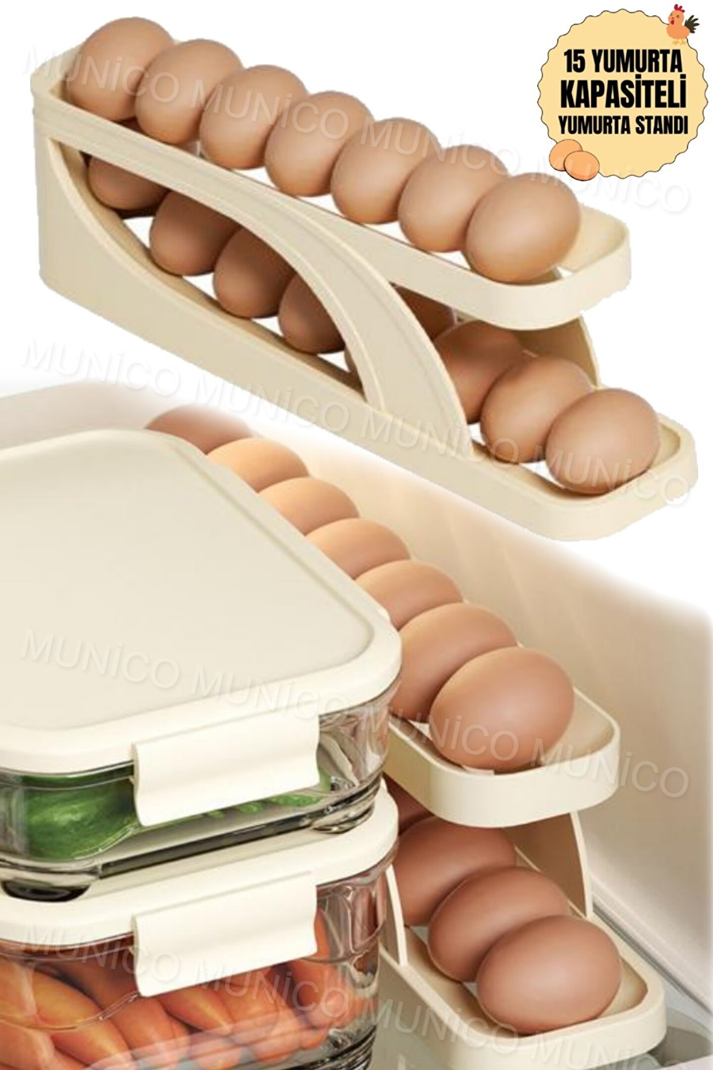 Gaggani Ev Otomatik Kaydırma Yumurta Raf Tutucu 2 Katlı Buzdolabı Organizatör Buzdolabı Yumurtalık Rafı