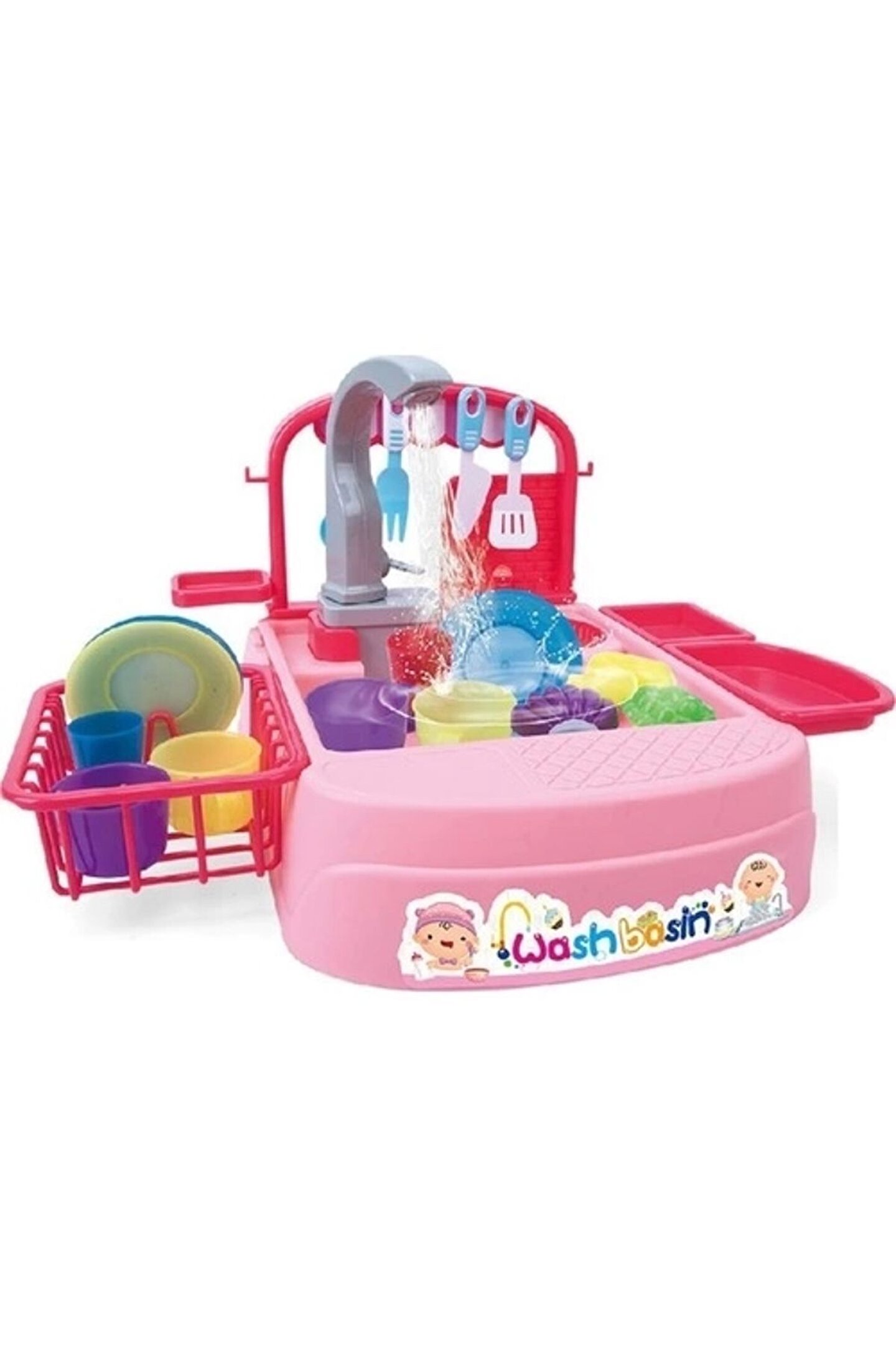 Galtoys Pilli Mutfak Lavabosu Pembe 168A-19AModern Çeşmeli Lavabo Oyun Seti Modern Çeşmeli Lavabo Oyun Seti ile eğlence dolu oyunlara hazır olun! Çocugunuzun mutfakta bulaşık yıkama deneyimini yaşayabilmesi için harika bir oyun seti! Lavabonun musluğu pil ile çalışmaktadır. ; Lavabonun altına koyulan su musluktan akmaktadır. ; Sudan tasarruf etmek için otomatik su sirkülasyon sistemini benimser ve oyunun eğlencesini artırır. ; Toplam 25 parçadan oluşmaktadır. ; 3 x 1,5V AA pil ile çalışmaktadır. ; Piller kutuya dahil değildir.;