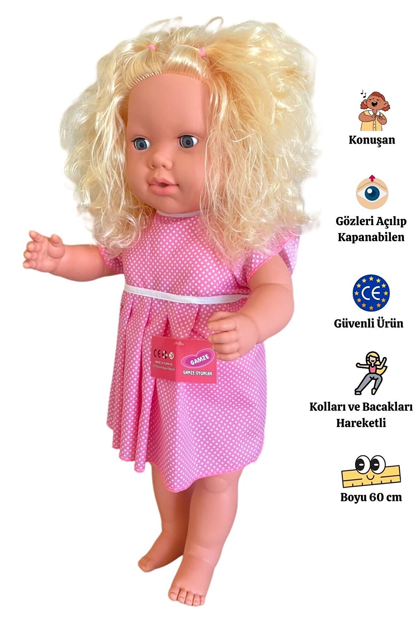 Büyük Boy Türkçe Konuşan Sarı Saçlı Et Bebek Oyuncak (60 CM)