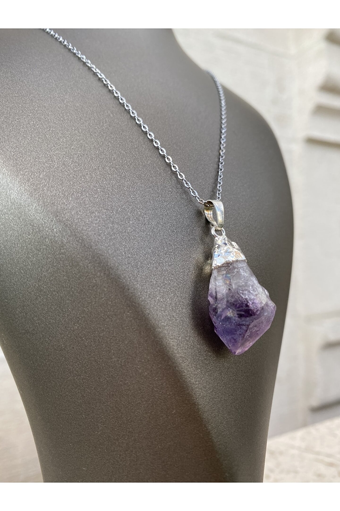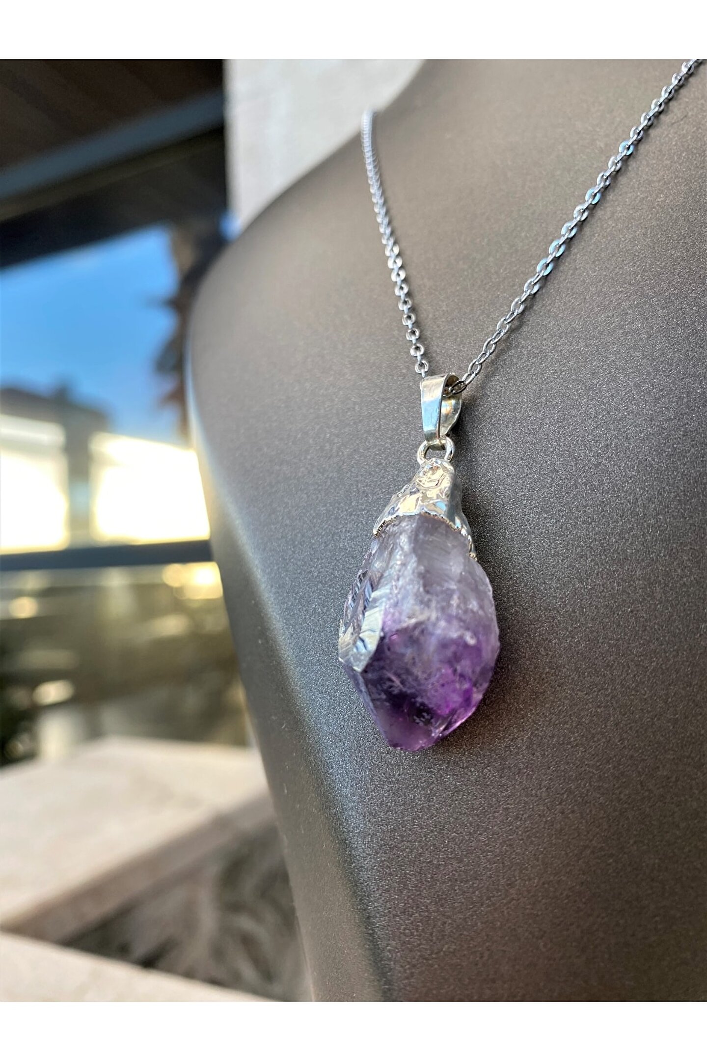 AMETİST “Pozitif Enerji Taşı.” “Ametist ile enerjini sürekli tazele ve canlandır.“ Negatif enerji ve nazara karşı koruyucudur. ; Psikolojik problemlerin azalmasında ve daha dingin daha dengeli bir ruh haline kavuşmanız için kullanılır. ; Takıntı ve endişeleri azaltır. ; O yüzden Merkür gezegeninin taşı olarak bilinir. ; Odaklanmayı sağlar. ; Meditasyonlarınızda kullanabilirsiniz. ; En bilindik ve en faydalı doğal taşlardan birisidir. ; (Doğal taşınızı adaçayı ile tütsüleyip kullanmaya başlayabilirsiniz. ; 15 günde bir aynı işlemi yaparak taşınızın enerjisini temizlemelisiniz.) Zincir uzunluğu 28 cm.;