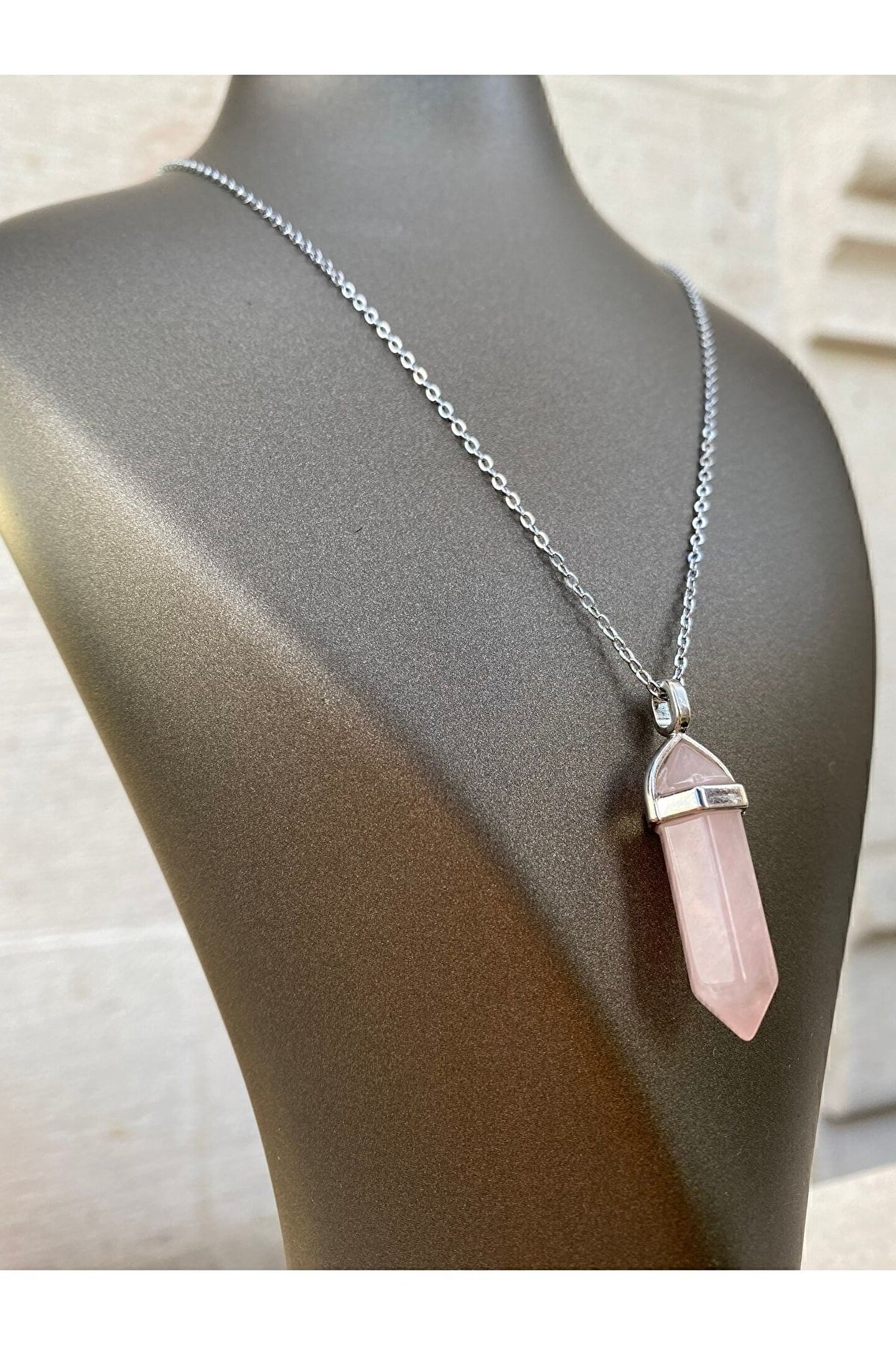 PEMBE KUVARS “Aşk Taşı / Sevgi Taşı.” “Doğru Aşk ve Sevgiler hayatını sarsın.. ; Pembe Kuvars kalbine iyi gelecek.” Doğru aşk ve sevgiyi hayatınıza çekmenize yardımcı olur. ; Mutluluk duygusu verir. ; İlişkinizi yoluna koymak için yararlıdır. ; İçinizdeki dişi enerjiyi açığa çıkarmak için kullanabilirsiniz. ; Kalbi hastalıklara ve travmalara karşı korur. ; Ametist ile birlikte kullanıldığı zaman enerjiyi arttırır. ; (Doğal taşınızı adaçayı ile tütsüleyip kullanmaya başlayabilirsiniz. ; 15 günde bir aynı işlemi yaparak taşınızın enerjisini temizlemelisiniz.) Zincir uzunluğu 28 cm.;