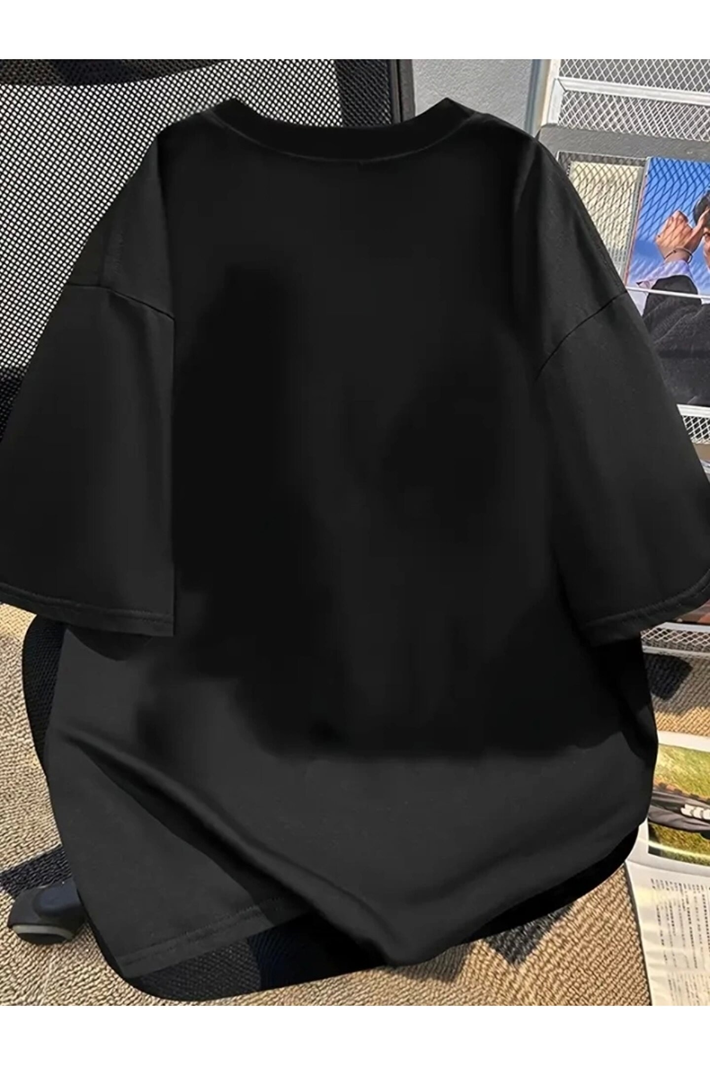 GE TİCARET Baskılı Oversize Bisiklet Yaka T-shirt - Siyah
