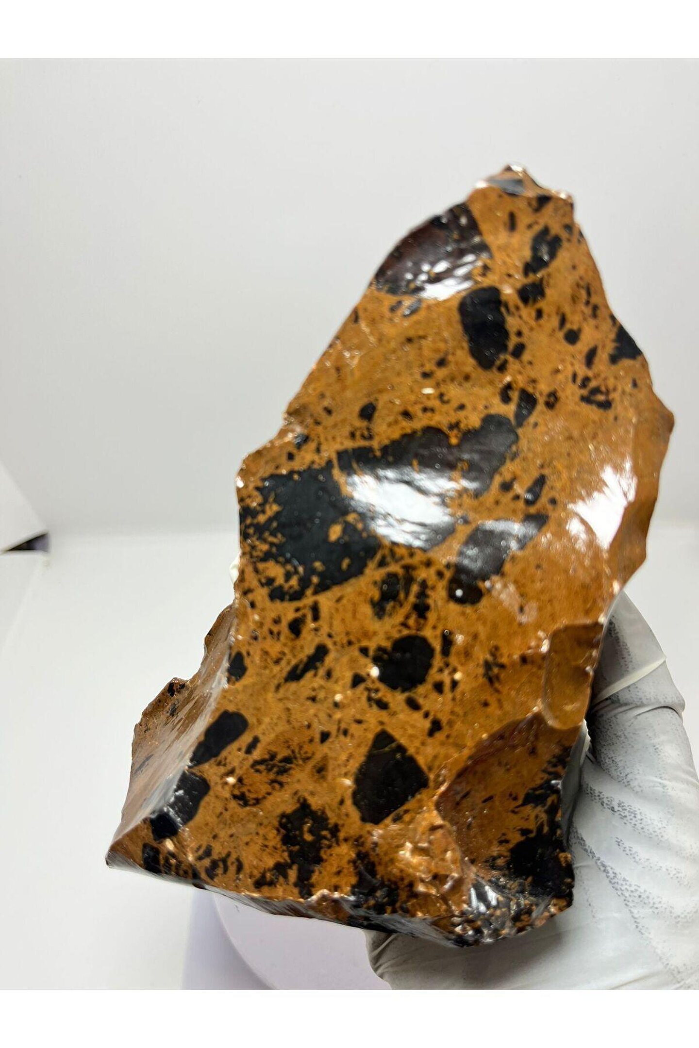 Doğanın saf güzelliğini evinize taşıyan obsidyen duygu taşı, mermer materyali ile hem dayanıklı hem de estetik bir görünüm sunar; Tek parça halinde gelen bu doğaltaş kütle, minimalist dekorasyon anlayışınıza uyum sağlayarak mekanınıza huzurlu bir atmosfer katar; Doğal taşların sıcaklığını ve zarafetini yansıtan bu ürün, yaşam alanlarınıza doğanın özünü taşıyarak estetik bir dokunuş ekler;