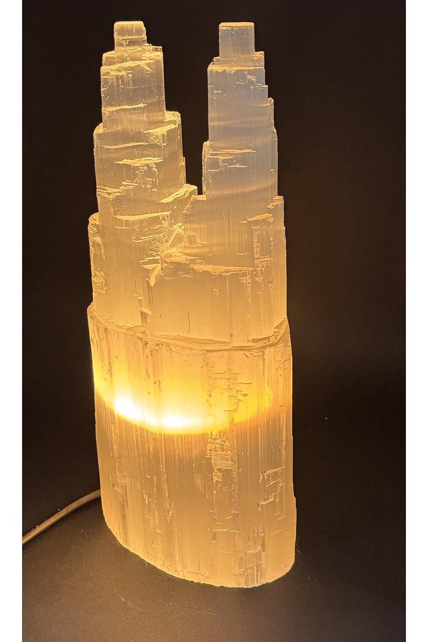 gemsartdeco SELENİT DOĞALTAŞ TWİN TOWER LAMBA 30 CM