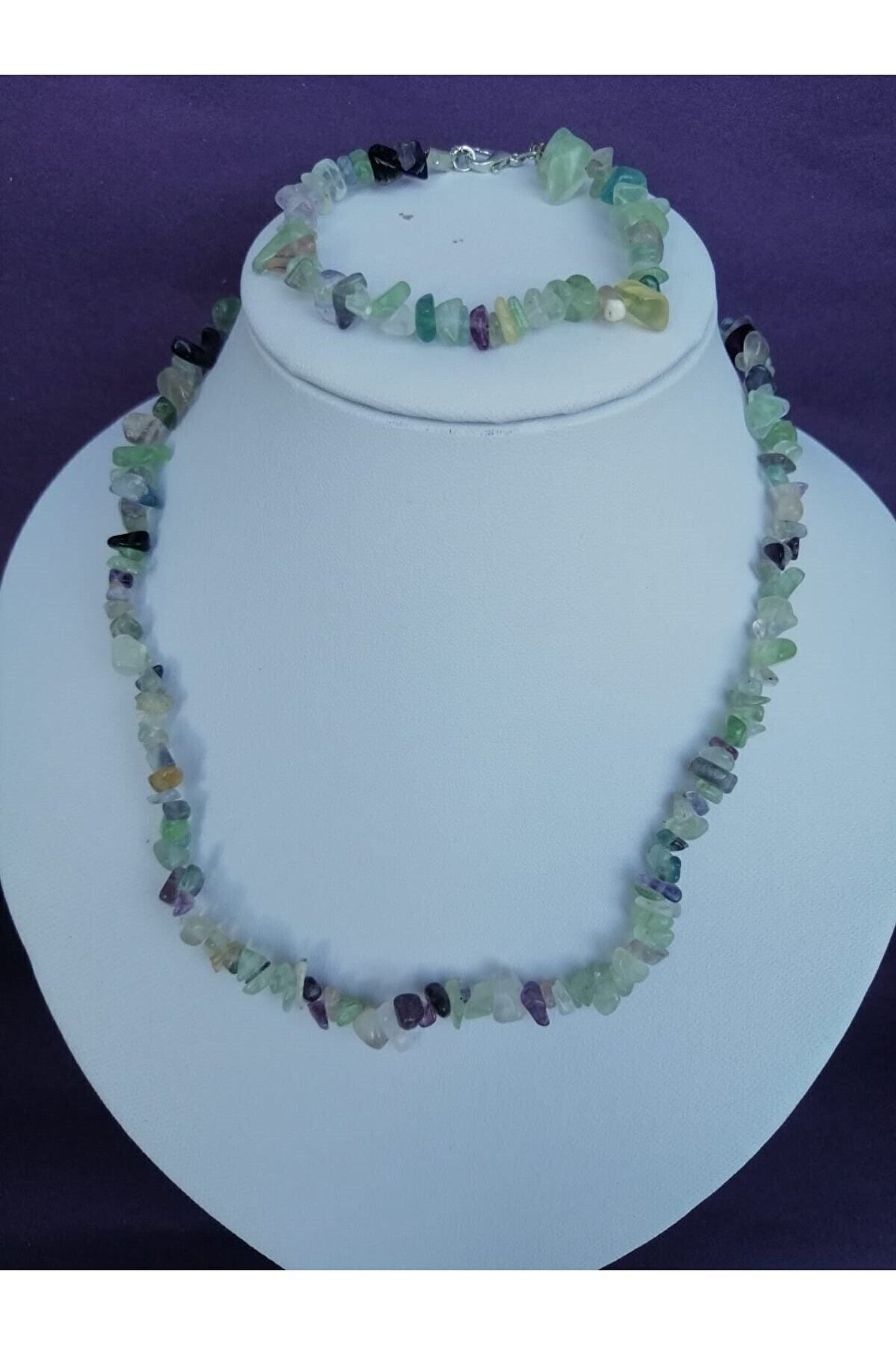 Doğal taş kullanımı sayesinde her parça benzersiz ve otantik bir görünüm sunar; Florit kolye ve bileklik seti, kırık doğaltaşın eşsiz dokusuyla dikkat çeker; Bu takı seti, hem günlük kullanım hem de özel günler için ideal bir aksesuar seçeneği sunar; Doğal taşların zarifliği ve estetiği, her kıyafetle uyum sağlayarak stilinizi tamamlar;