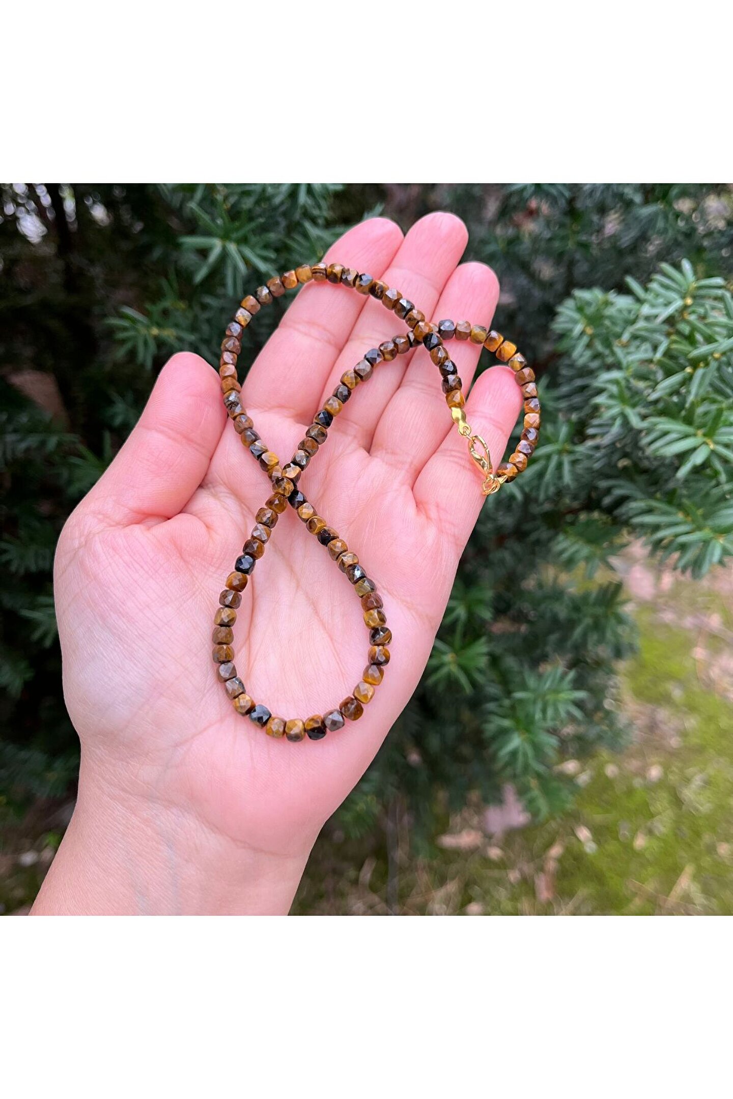 Doğal taş kullanımı sayesinde her kolye benzersiz ve otantik bir görünüm sunar; Kaplangözü küp kesim doğal taş, zarif ve modern bir tasarıma sahiptir; 43 cm uzunluğundaki bu kolye, boynunuza şık bir dokunuş ekler; Doğal taş materyali ile hem dayanıklılık hem de estetik bir parlaklık sağlar;