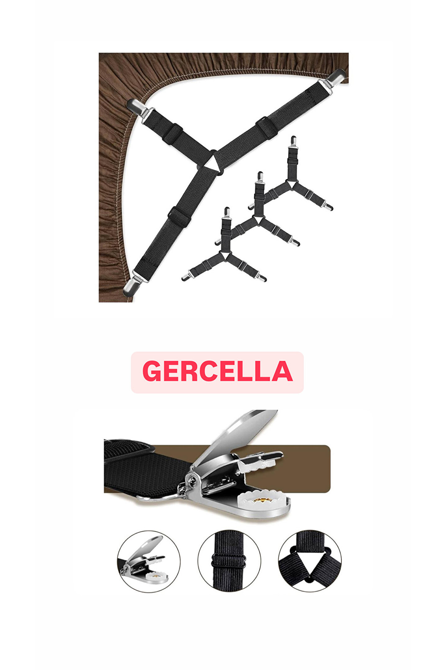 GERCELLA Elastik Üçgen Çarşaf Ve Örtü Gerdiricisi ve çarşaf tutucuısu Kısa Tip Siyah