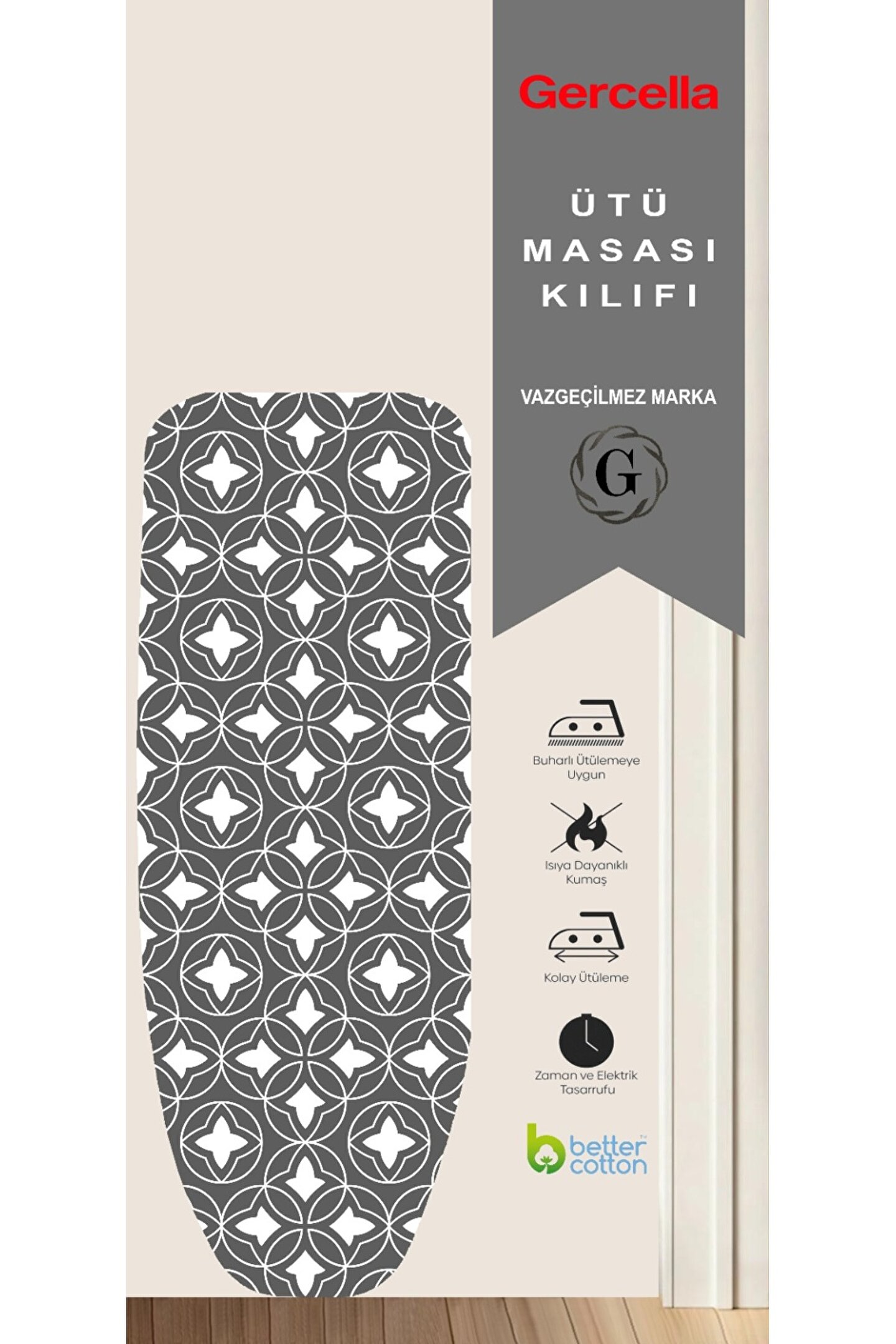 GERCELLA POYRAZ GREY 120X45(XS SİZE) ÜTÜ MASASI KILIFI BEZİ ÖRTÜSÜ IRONING BOARD COVER