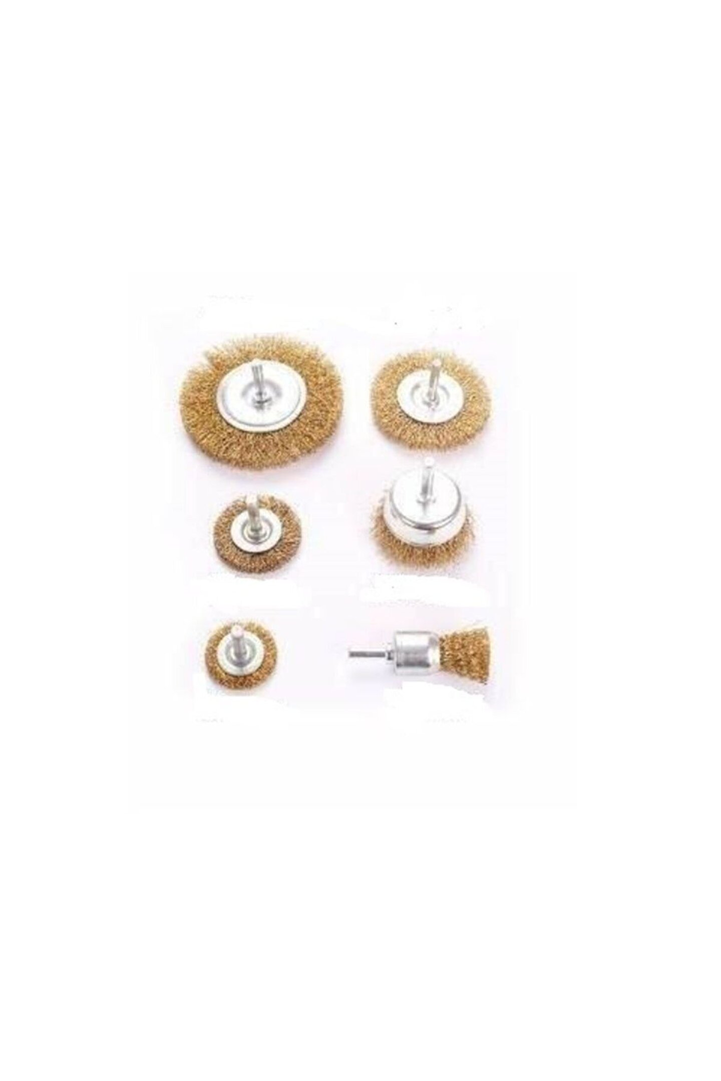 Pimli Çelik Tel Fırça Seti 6lı-matkap Ucu Tel Fırça Zımpara Seti