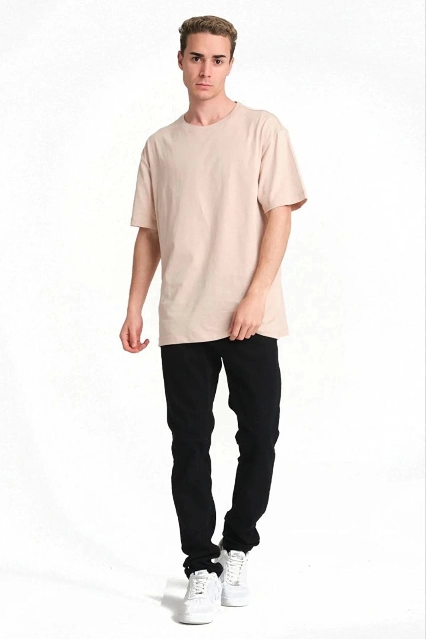 Ghetto Giyim Erkek 241 Düz A Kalite Oversize T-shirt - Bej