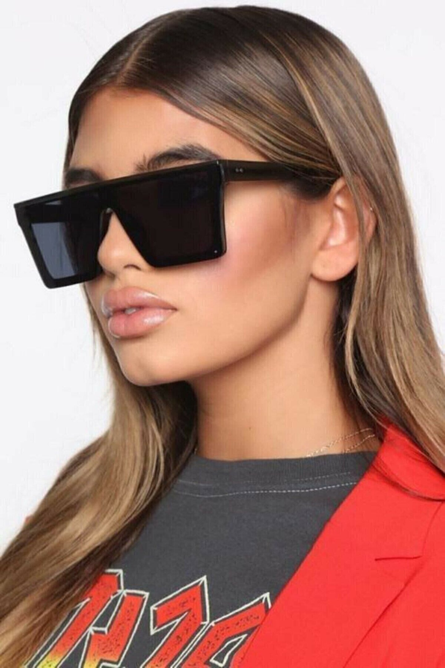 Kare Büyük Siyah Unisex Güneş Gözlügü