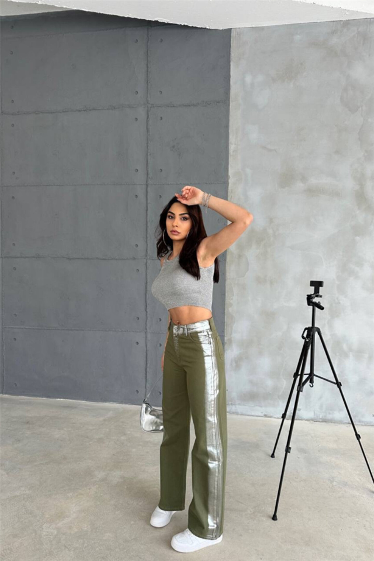 gl00my GABARDİN PALAZZO PANTOLON - Haki