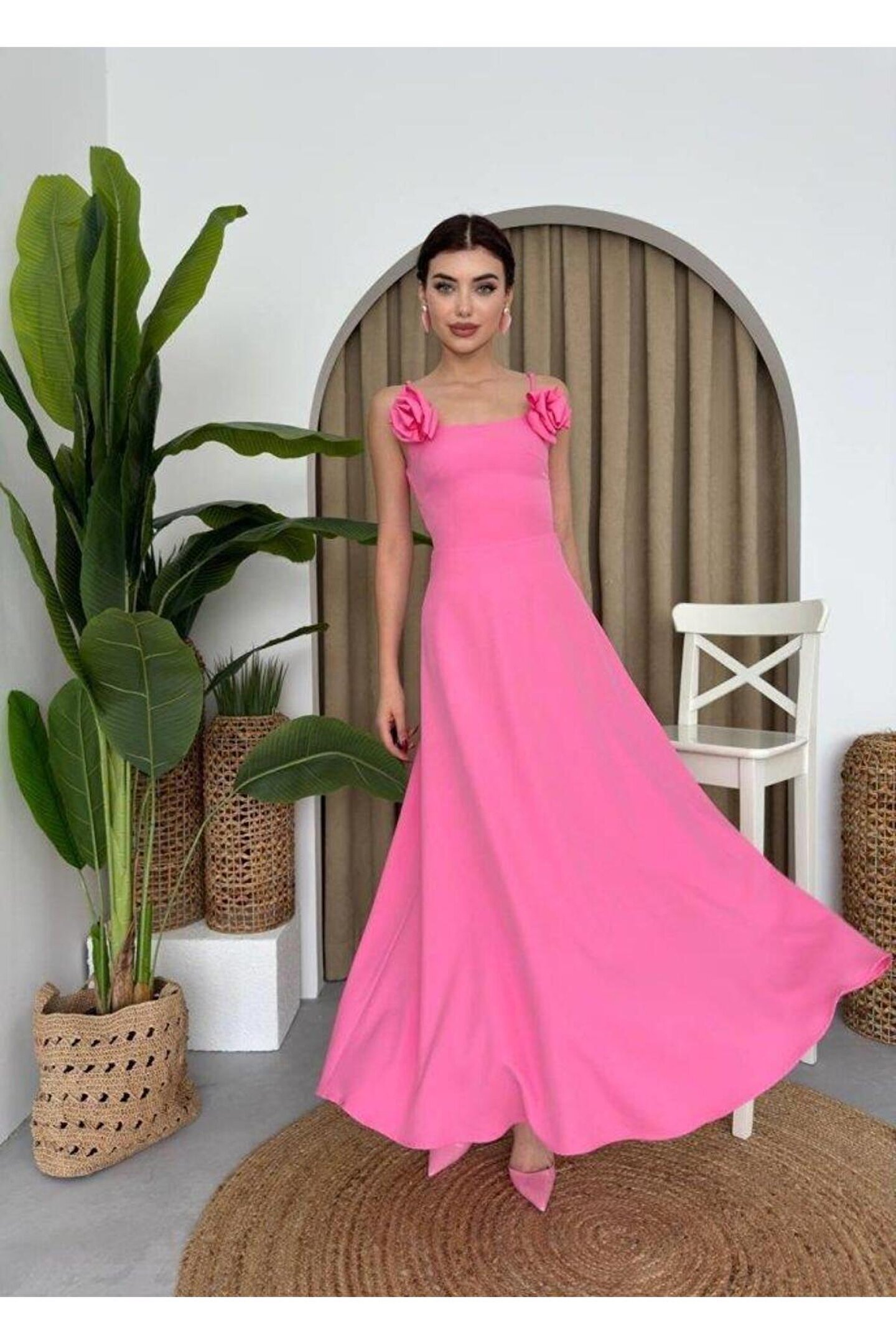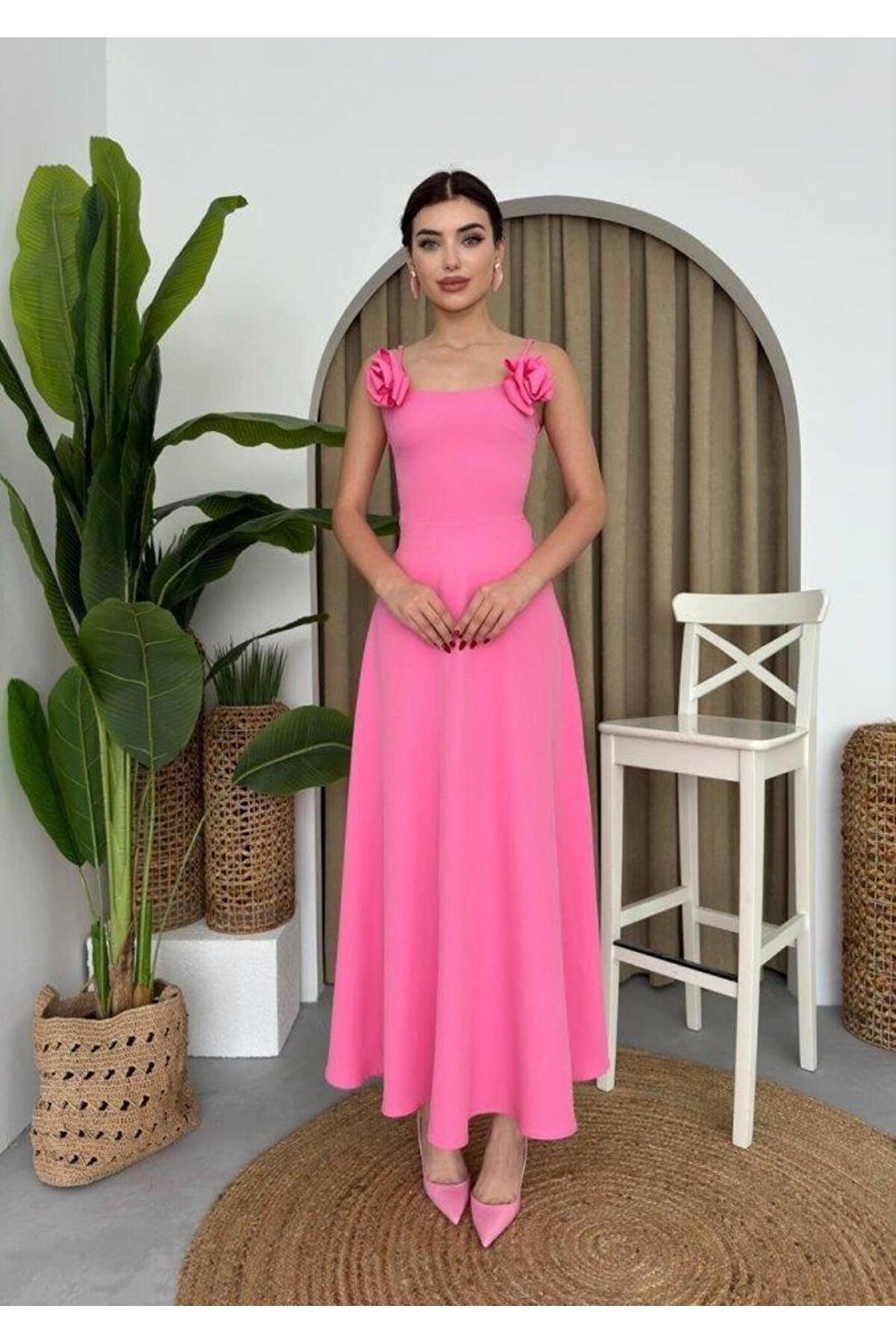 Matilda Gül İp Askılı Elbise