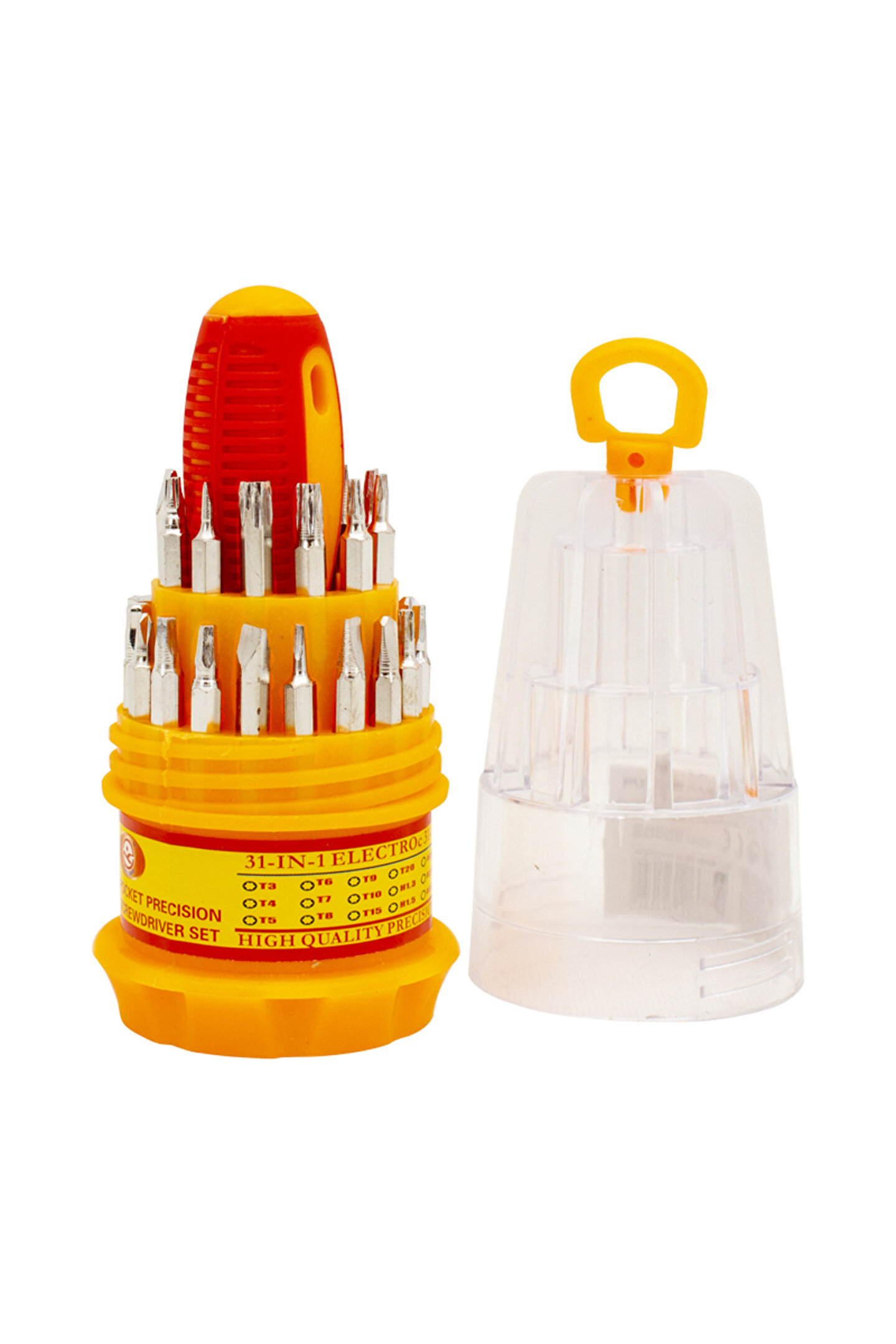 31in1 Değiştirilebilir Uç Tornavida Set Huajun Özellikleri Tanım : Tornavida Set; 31 Adet değiştirilebilir uç; Tornavida Uzunluğu : 10 Cm; Laptop, cep telefon, saat vb. cihazlara uyumlu başlıklar.; Metal başlıklar; İnce ve küçük yerlere ulaşabilmesi için tasarlanmıştır.; Kauçuk tutma yerleri; Mıknatıslı uçlar; Model : 35383; Paket İçeriği 1 adet: Tornavida Sapı; 4 adet: Yıldız Tornavida -PH00-PHO-PH1-PH2; 9 adet: Tork Tornavida - T3-T4-T5-T6-T7-T8-T10-T15-T20; 5 adet: Düz Tornavida - 1.5-2-2.5-3-3.5; 7 adet :Alyan uç; 5 adet :Çeşitli uç -çatal uç-delikli uç-gibi; 1 adet :Taşıma çantası plastik;