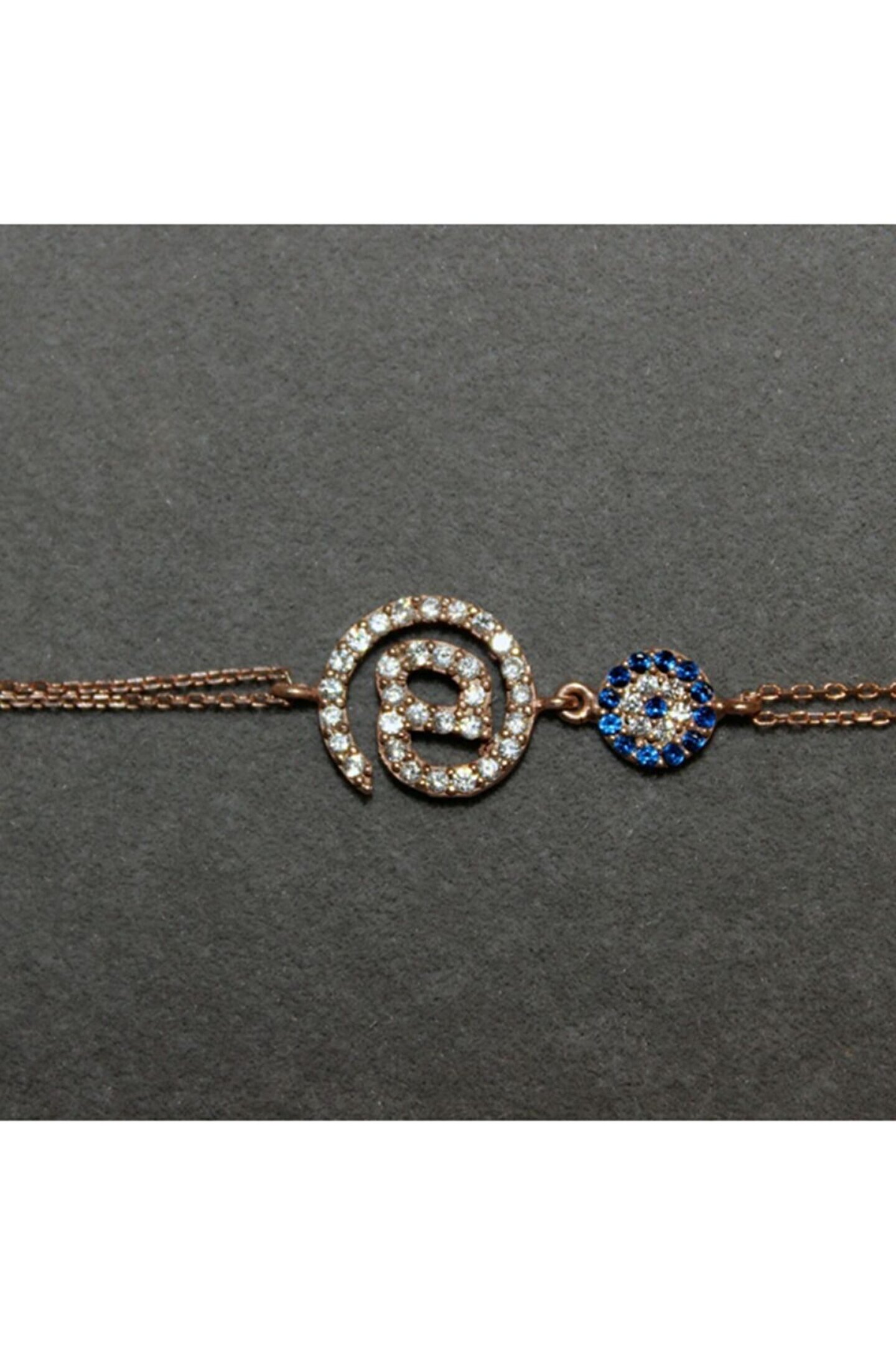 Zarif tasarımıyla dikkat çeken bu gümüş bileklik, her türlü kıyafetle uyum sağlayacak şıklığı sunar; Göz alıcı zirkon taş detayları ile ışıltınızı her ortamda ön plana çıkarır; A bileklik formu, modern ve klasik tarzları harmanlayarak günlük kullanım için idealdir; Kaliteli malzeme seçimi sayesinde uzun süreli kullanım vaat eder ve dayanıklılığı ile ön plana çıkar.; A parçasının genişliği 13.35, boyu 11.70 mm, nazarın çapı 6.80 mm.