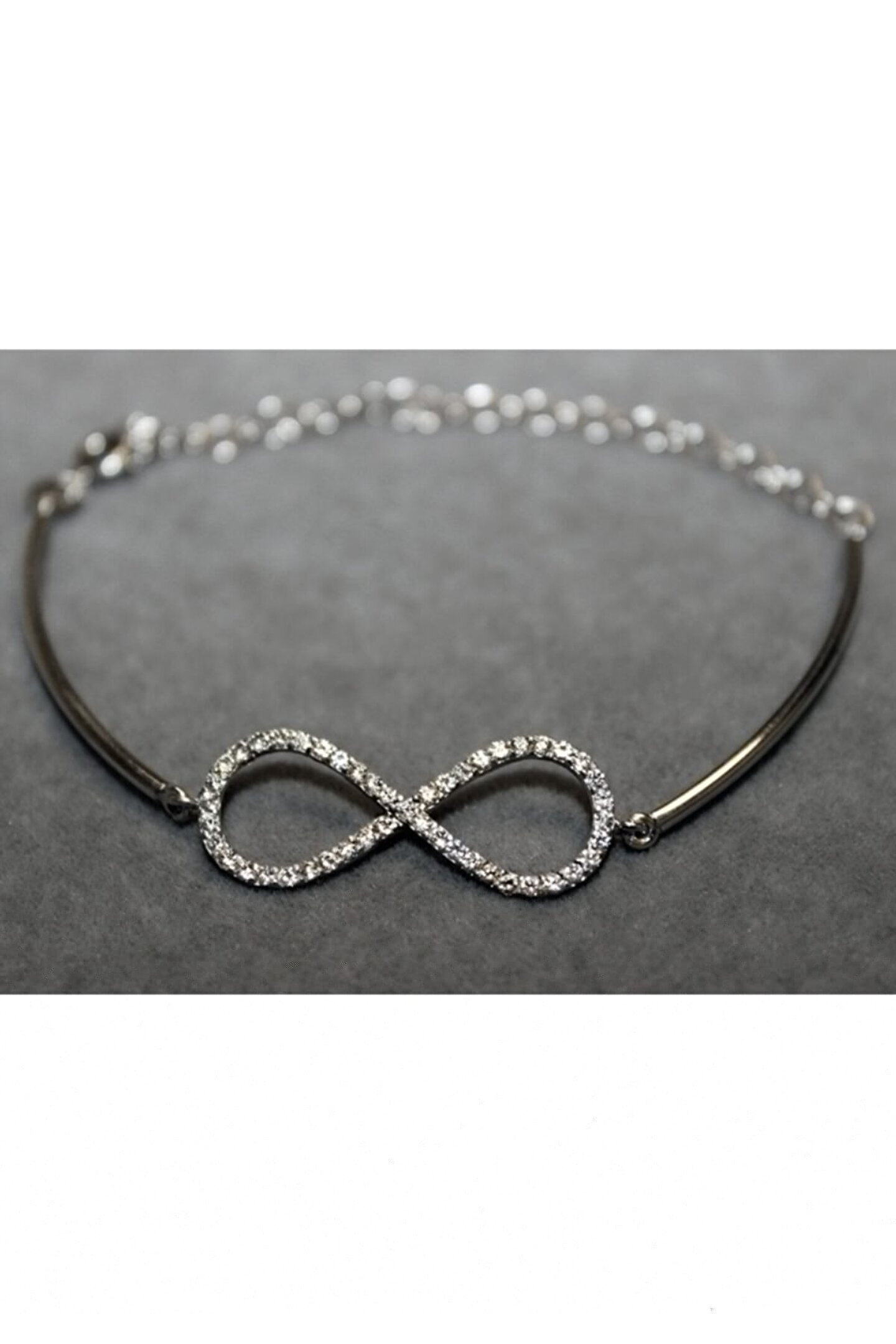 - Zarif tasarımıyla dikkat çeken bu gümüş bileklik, şıklığınızı tamamlayacak bir aksesuar; - Göz alıcı zirkon taş detayları ile ışıltınızı her ortamda ön plana çıkarır; - Sonsuzluk teması, zamansız bir güzellik sunarak her yaş grubuna hitap eder; - Gümüş rengi, klasik ve asil bir görünüm sağlayarak her türlü kıyafetle uyum sağlar.; Sonsuzluk parçasının genişliği 27.70 mm, boyu 10.80 mm, tel 32.20 mm.
