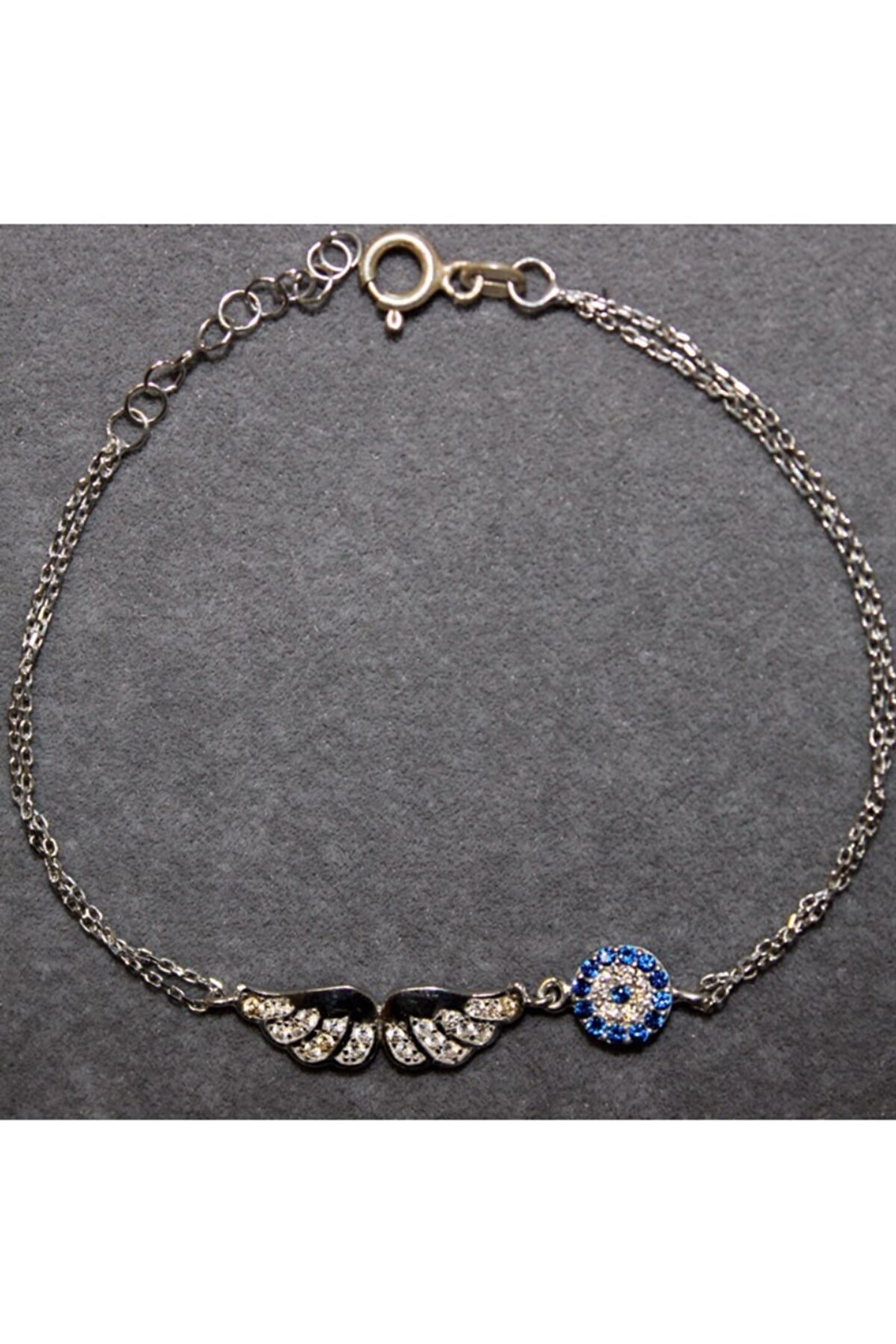 Zarif tasarımıyla dikkat çeken melek kanadı taşlı bileklik, gümüş rengi ve zirkon taş detaylarıyla göz alıcı bir görünüm sunar; Zirkon taş kullanımı sayesinde, bileklik hem şıklığı hem de parıltıyı bir arada barındırır ve her türlü özel gününüzde ışıltınızı ön plana çıkarır; Melek kanadı motifinin zarif çizgileri, bileklik tasarımına modern ve estetik bir dokunuş katarak, günlük kullanım için idealdir; Gümüş rengi ile klasik ve zamansız bir tarz yaratırken, zirkon taşların ışıltısı ile her ortamda dikkat çekici bir aksesuar olmanızı sağlar;