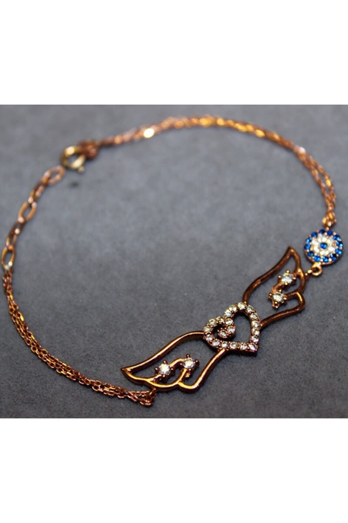 Zarif tasarımıyla dikkat çeken melek kanatlı kalp bileklik, gümüş rengi ve zirkon taş detaylarıyla göz alıcı bir görünüm sunar; Zirkon taş kullanımı sayesinde, bileklik hem şıklığı hem de parıltıyı bir arada barındırır ve her türlü özel gününüzde ışıltınızı ön plana çıkarır; Melek kanatları motifinin zarif çizgileri, bileklikteki zirkon taşlarla mükemmel uyum sağlayarak estetik bir bütünlük oluşturur; Gümüş rengi, farklı kıyafet kombinlerinizle kolayca uyum sağlayarak her ortamda stilinizi tamamlamanızı sağlar;