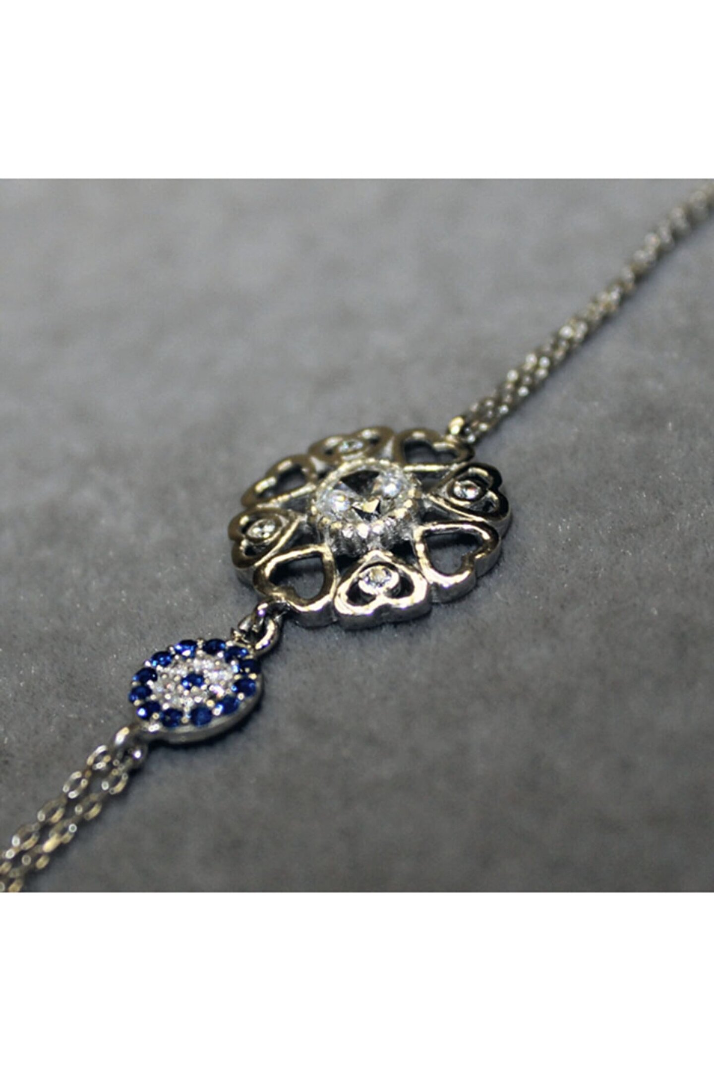 Gümüş zirkon taşlı ve nazar boncuğu detaylı 8 kalpli bileklik modeli 925 ayar gümüşten ımal edılmıştır. Gümüş zirkon taşlı ve nazar boncuğu detaylı 8 kalpli bileklik modeli üzerinde zirkon taşlar kullanılmıştır. Gümüş zirkon taşlı ve nazar boncuğu detaylı 8 kalpli bileklik modeli üzerıne rodyum kaplama yapılmıştır. Rodyum kaplama yapılan gümüş bileklik modellerı parlaklığını uzun süre muhafaza eder ve oksıtlenmesı gecıkır. Gümüş olan zıncır boyu ayarlanabilir 15,5-18 cm'dır. Gümüş zirkon taşlı ve nazar boncuğu detaylı 8 kalpli bileklik modeli %100 el emeğı ıle üretılmıştır. Gümüş ve değerlı taşlar nedenıyle belırtılen ürün ağırlığında ± %5 sapma olabılmektedır. Ürün hedıye kutusunda gönderılecektır. zirkon taşının özellikleri; Mücevheratta kullanılan ve çok tercih edilen taş çeşitlerinden biridir. Zirkon taşı kahverengidir ve ısıtılarak renksiz hale getirilir. Zirkon taş kahverengi, kırmızı ve sarı renginde kendini gösterir. Mücevher olarak kullanılan renklerden en çok renksiz olanı tercih edilir. Zirkon taşının albenisi sadece fiziksel görünümden değil, vücudu rahatlatan zihni kuvvetlendiren duygusal anlamda dengeyi koruyan ve uyumayı kolaylaştırıcı özelliklerinden dolayı da tercih edildiği bilinir. Ayar 925 ayar Net ağırlık 2,70 gram Anti alerji ve kararma önleyici kaplama Rhodıum kaplama Zincir boyutu En uzun 18cm en kısa 15,5 cm ayarlanabilir Renk Beyaz