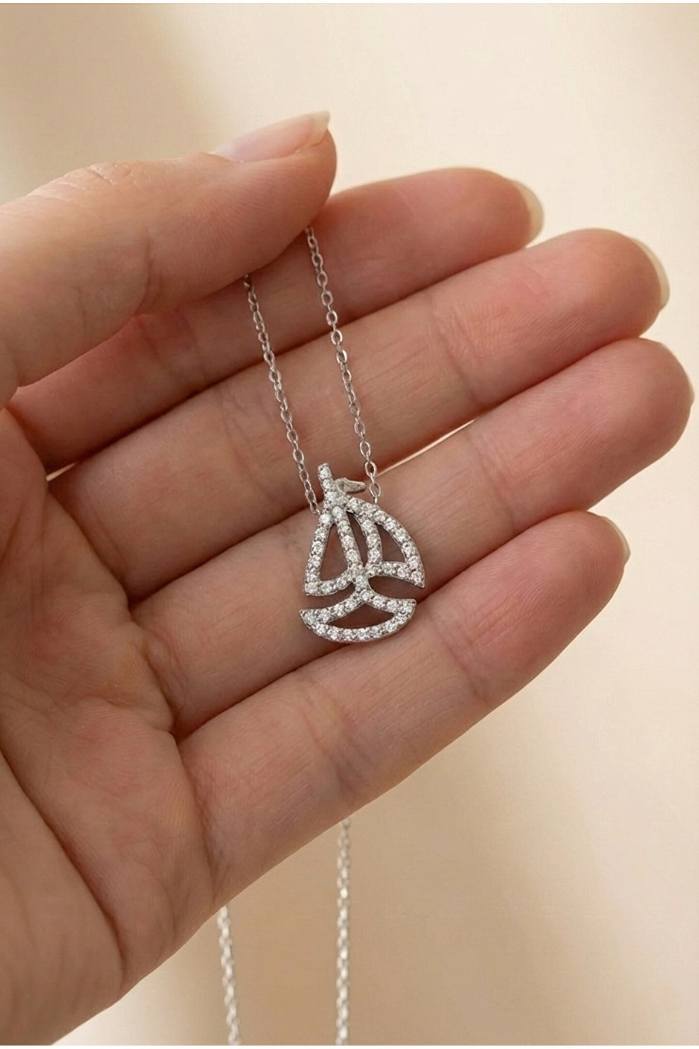 Göz alıcı zirkon taşlarla süslenmiş, zarif tasarımıyla dikkat çeken taşlı yelken kolye; Gümüş rengi kaplama ile modern ve şık bir görünüm sunar; Zirkon taşların ışıltısı, her ortamda göz kamaştırıcı bir etki yaratır; Özel günlerde veya günlük kullanım için ideal, her kıyafetle uyum sağlayacak zarif bir aksesuar;