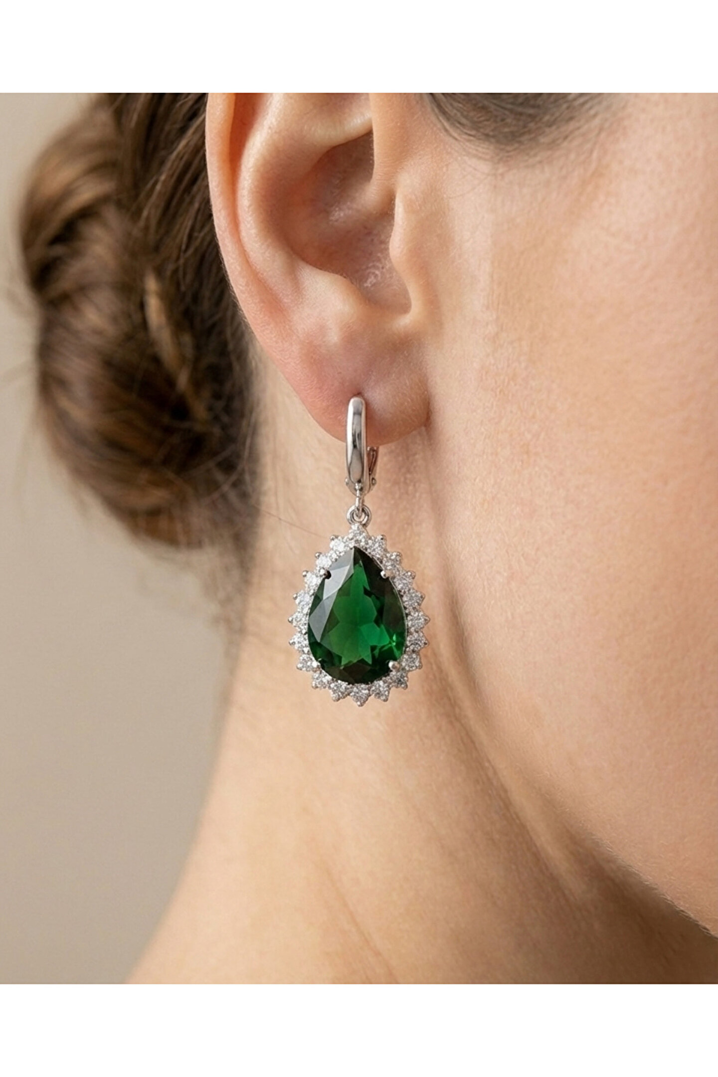 Göz alıcı yeşil zirkon taşlarla süslenmiş, zarif ve modern tasarımıyla dikkat çeken gümüş küpe; Zirkon taşların ışıltısı, her türlü kıyafetle uyum sağlayarak şıklığınızı tamamlar; Gümüş malzeme kullanımı sayesinde hem dayanıklılık hem de estetik görünüm sunar; Günlük kullanım için idealdir; rahatlığı ve şıklığı bir arada sunar;