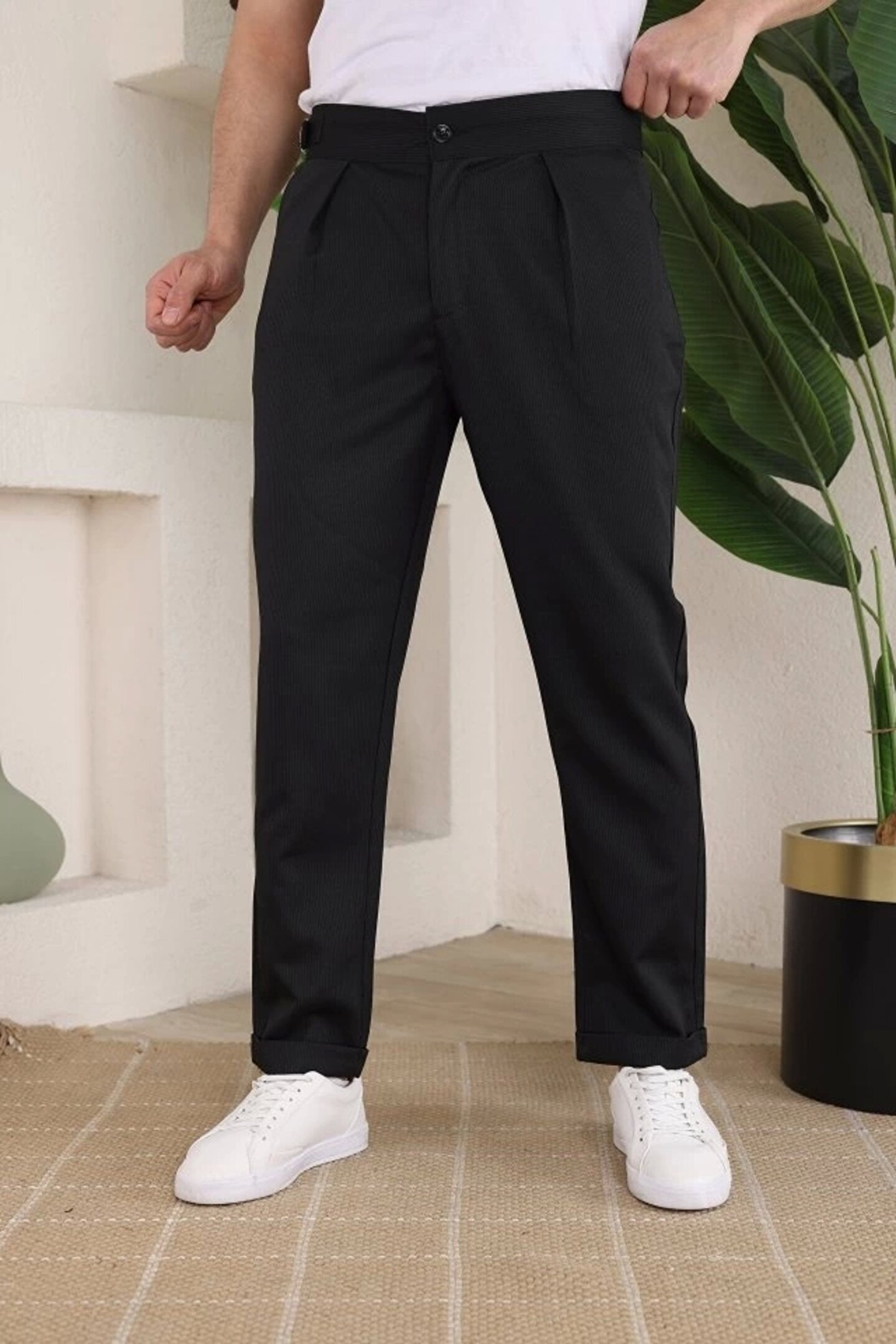 Erkek Duble Paça Yandan Tokalı Cord Desenli Old Money Pantolon