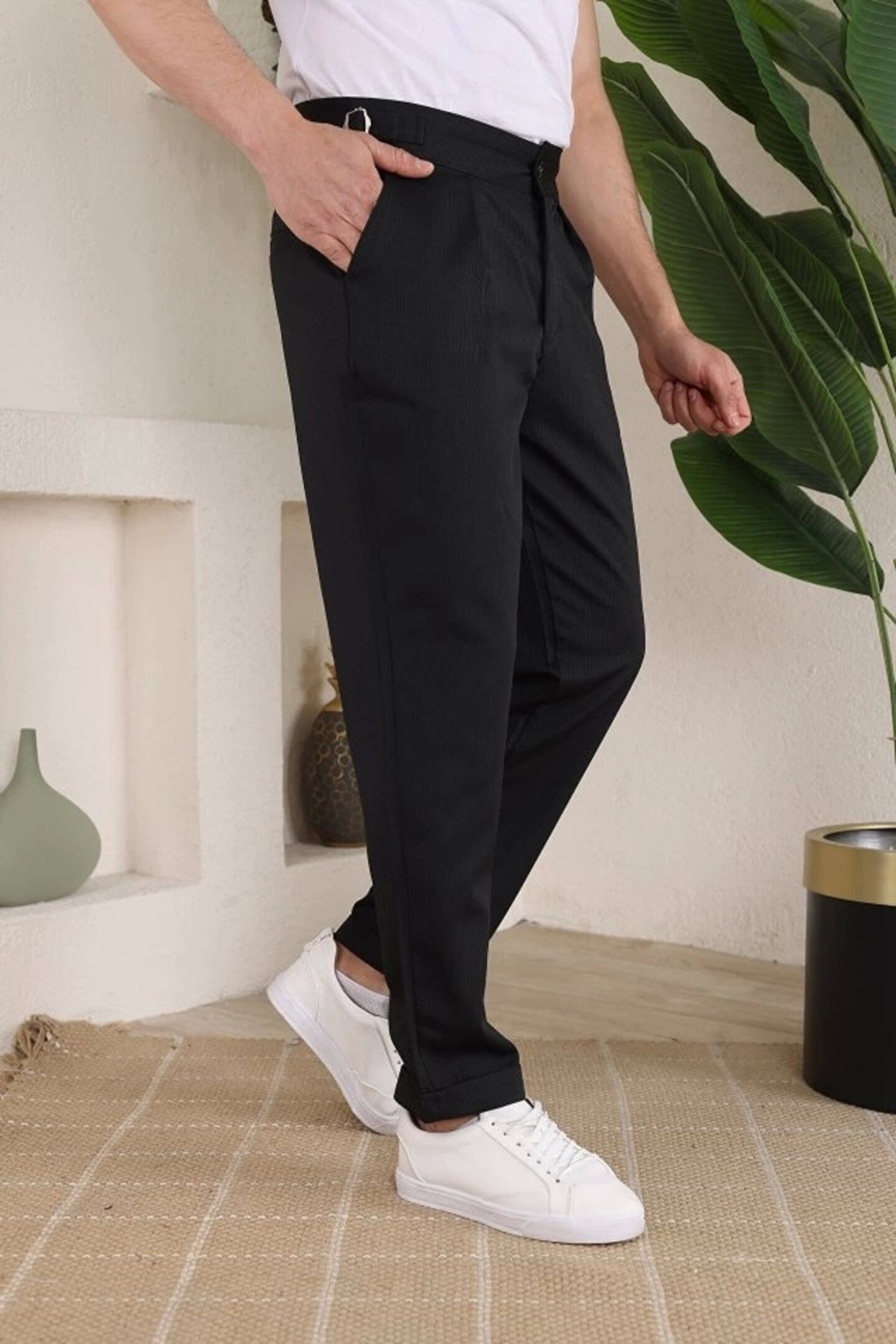 Erkek Duble Paça Yandan Tokalı Cord Desenli Pantolon