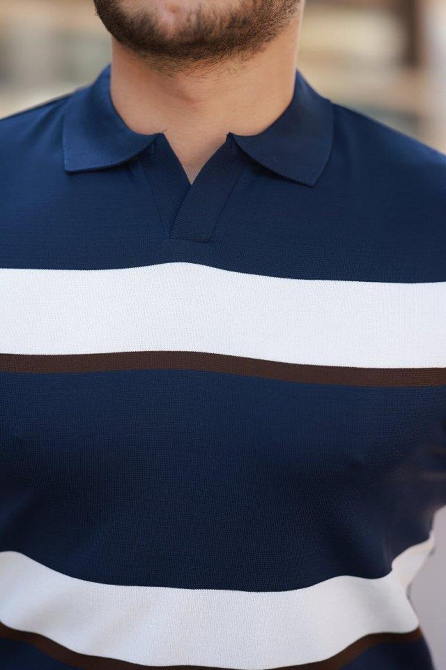 Erkek şerit Desenli Hemşire Yaka Kısa Kollu Tişört