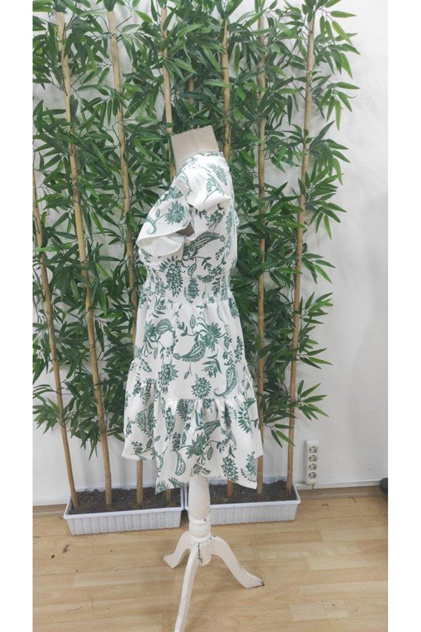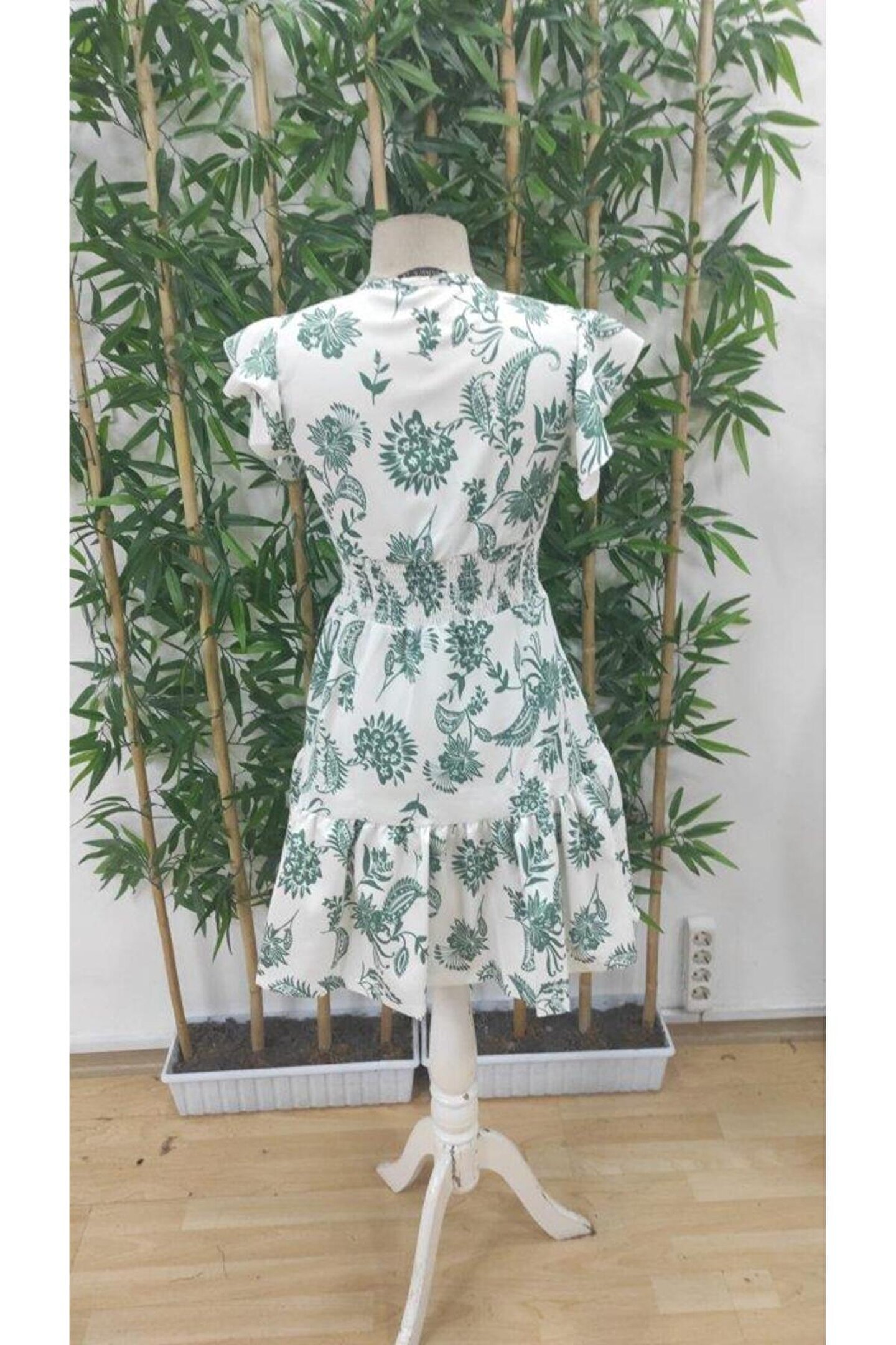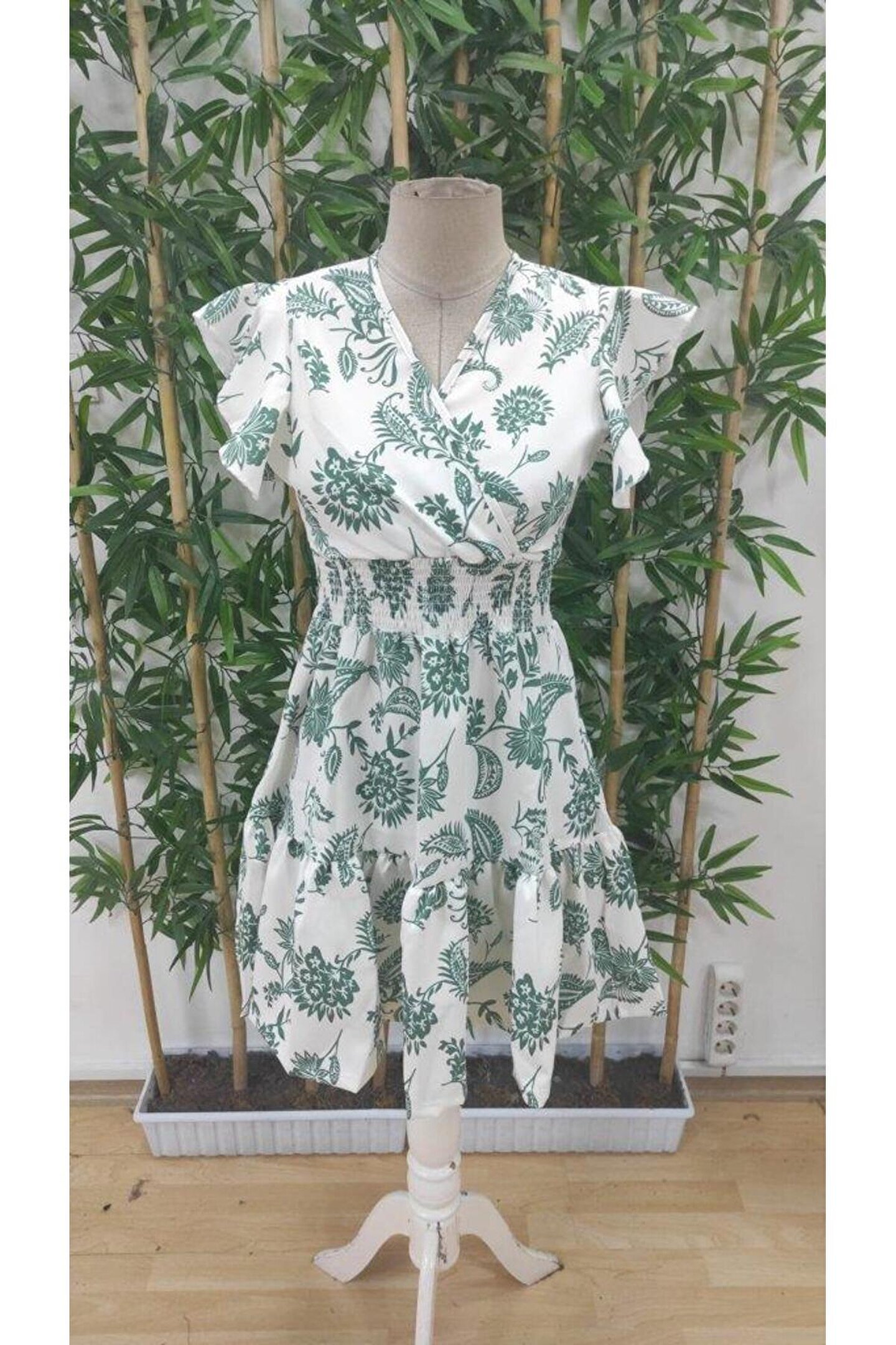 Gökyüzü Moda Kadın Kısa Fırfır Kollu Kruvaze Yaka çiçekli Atlas Elbise