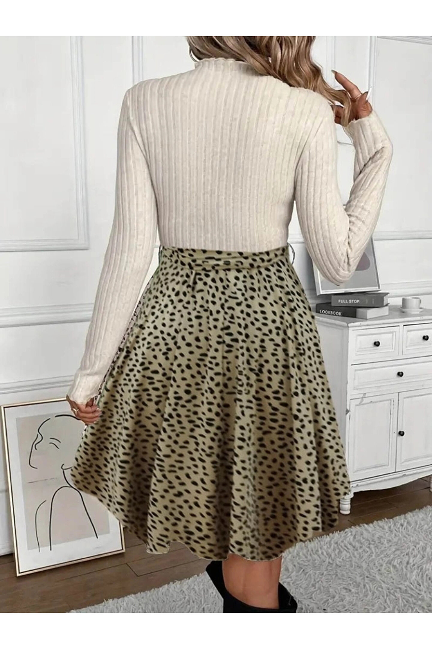 Kadın Uzun Kollu Balıkçı Yaka Belden Bağlamalı üst Kaşkorse Eteği Dalgıç Elbise
