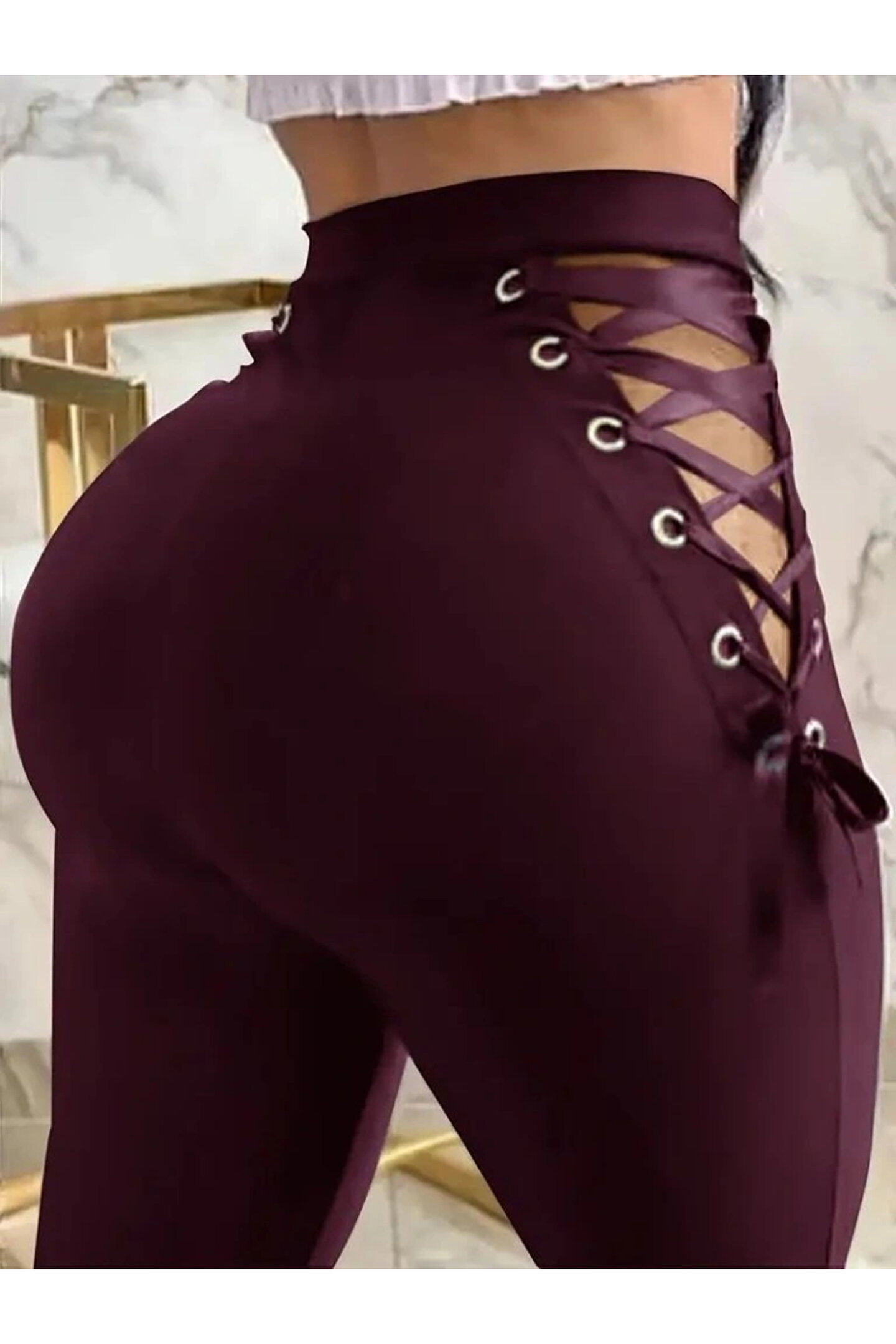 Kadın Yüksek Bel çapraz Bağcıklı Tül Detaylı Dalgıç Tayt