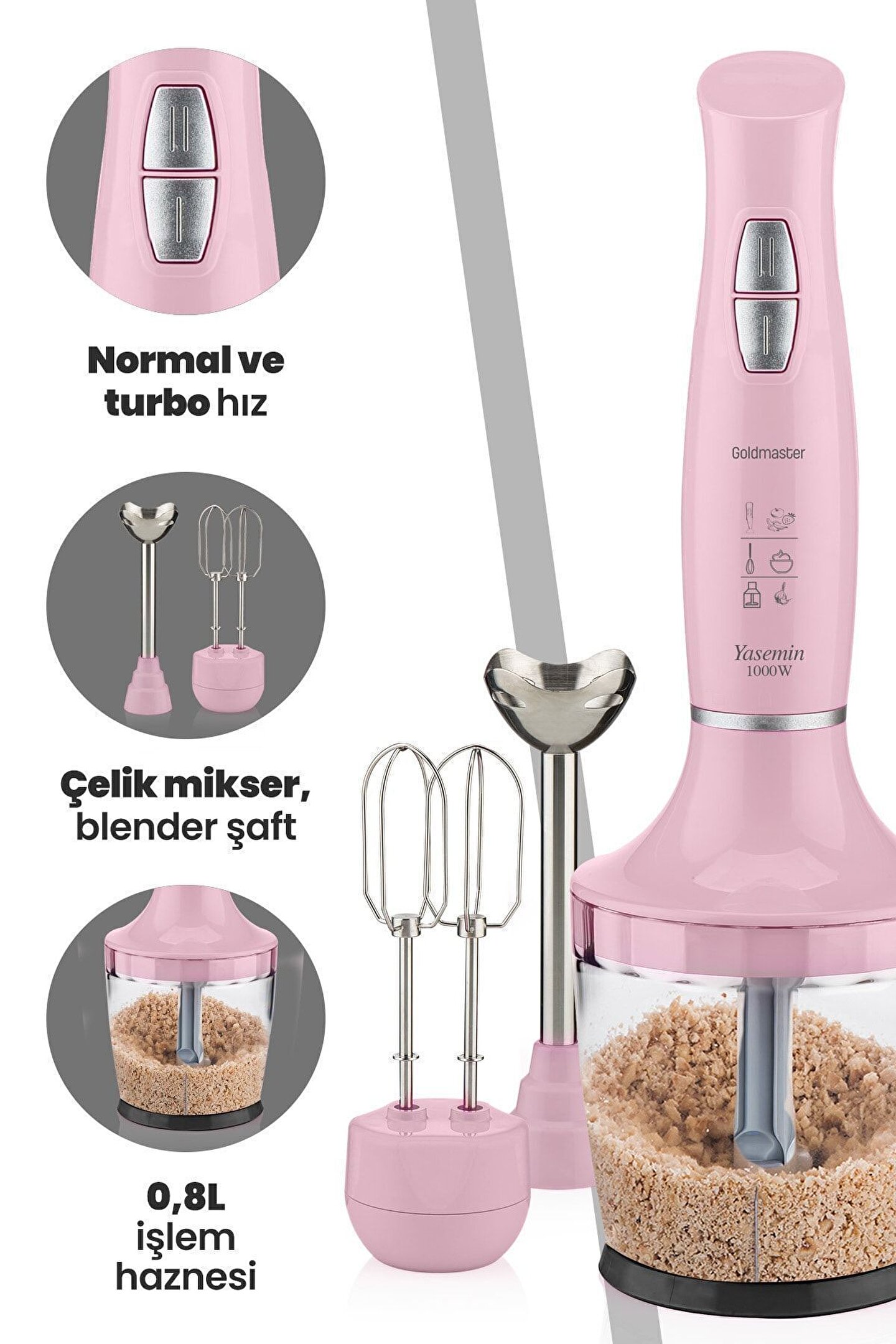 Yasemin 1000 Watt Sessiz Hız Ayarlı 3 In 1 Doğrama Karıştırma Blender Seti Pembe