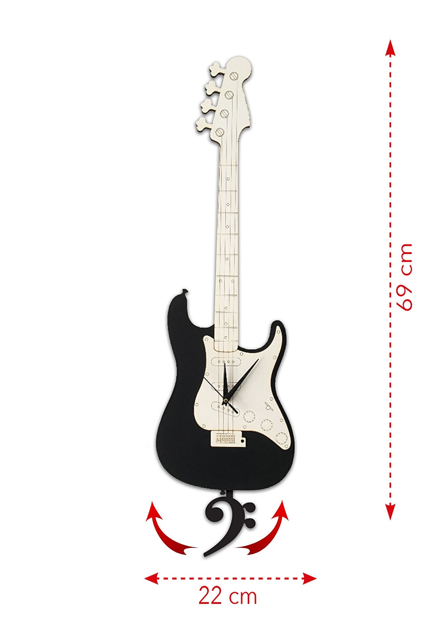 Goodtime Bas Gitar Dekoratif Sarkaçlı Duvar Saati ; ; Lütfen taklitlerden kaçınınız. Saatin markası "goodtime" dır. ; ; Ürün özellikleri: ; - 1. Kalite Ahşap Mdf Malzemeden üretilmiştir. ; - Ürün tamamen el yapımıdır. (hand made) ; - 2 adet AA pil ile çalışır.- 1 adet pil, saati çalıştırır; diğer pil sarkacıhareket ettirir. ; - Her saniyede “Fa Anahtarı” sağa solahareket eder. ; - Mekanizması yüksek kaliteli sessiz (quartz)çalışan akar saattir. ; - Saat üzerindeki akrep, yelkovan ve saniyemetal malzemedir. ; - Montaj şekli: Duvar çivisi- Montaja hazır özel askı aparatı ile bir çiviveya vidayla duvara kolayca sabitleyebilirsiniz. ; -Mutfak, oturma odası,çocuk odası,salon ve özel günlerinizde hediye olarak tercih edebileceğiniz dekoratif duvar saatidir. ; Ürün ebatları: ; Sarkaç Dahil Yükseklik: 69 cm ; Genişlik : 22 cm ; Derinlik : 4 cm ; Mdf Kalınlığı: 6 mm ; ;