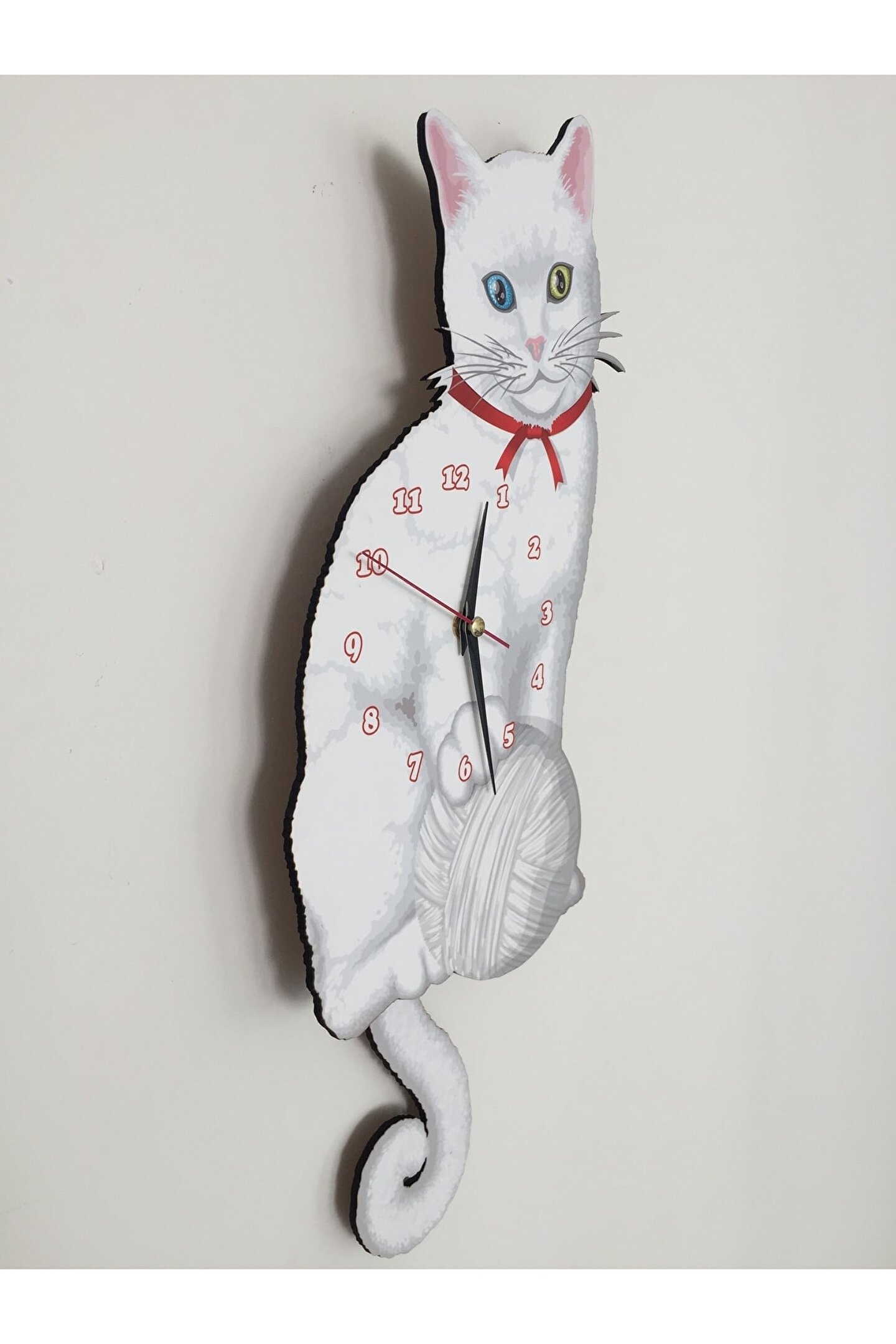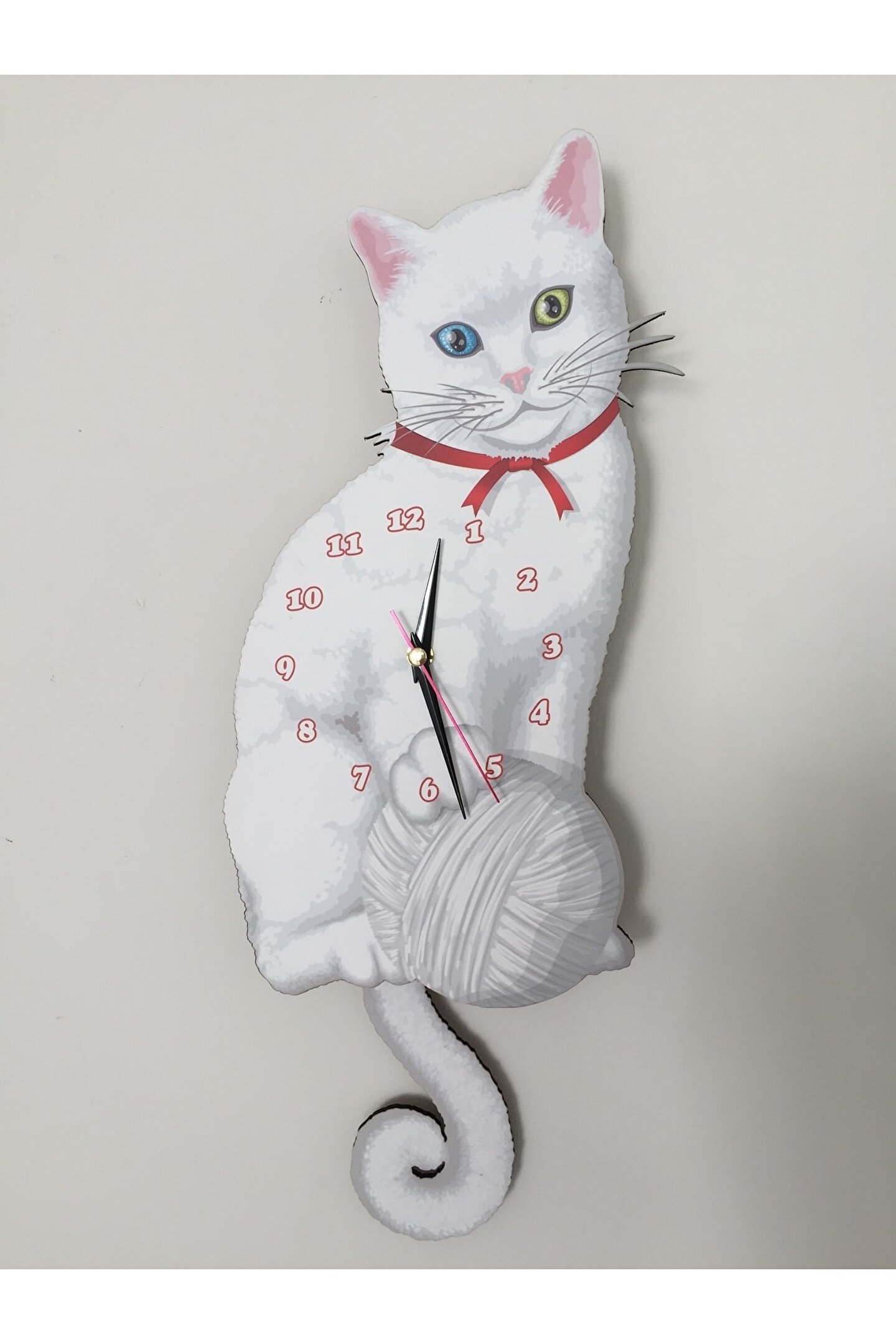 Goodtime Beyaz Kedi Dekoratif Sallanır Sarkaçlı Duvar Saati ; Ürün özellikleri: ; - 1. Kalite Ahşap Mdf Malzemeden üretilmiştir. ; - Ürün tamamen el yapımı (hand made) olup,yüksek kaliteli baskı ile üretilmektedir. ; - 2 adet AA pil ile çalışır. ; - 1 adet pil, saati çalıştırır; diğer pil sarkacı hareket ettirir. ; - Her saniyede “Kuyruk” sağa sola hareketeder. ; - Mekanizması yüksek kaliteli sessiz (quartz)çalışan akar saattir. ; - Saat üzerindeki akrep, yelkovan ve saniye metal malzemedir. ; - Montaj şekli: Duvar çivisi ; - Montaja hazır özel askı aparatı ile bir çivi ve ya vidayla duvara kolayca sabitleyebilirsiniz. ; -Mutfak,oturma odası,çocuk odası,salon ve özel günlerinizde hediye olarak tercih edebileceğiniz dekoratif duvar saatidir. ; Ürün ebatları: ; Sarkaç Dahil Yükseklik: 52 cm ; Genişlik : 20 cm ; Derinlik : 4 cm ; Mdf Kalınlığı: 4 mm ; ; ;