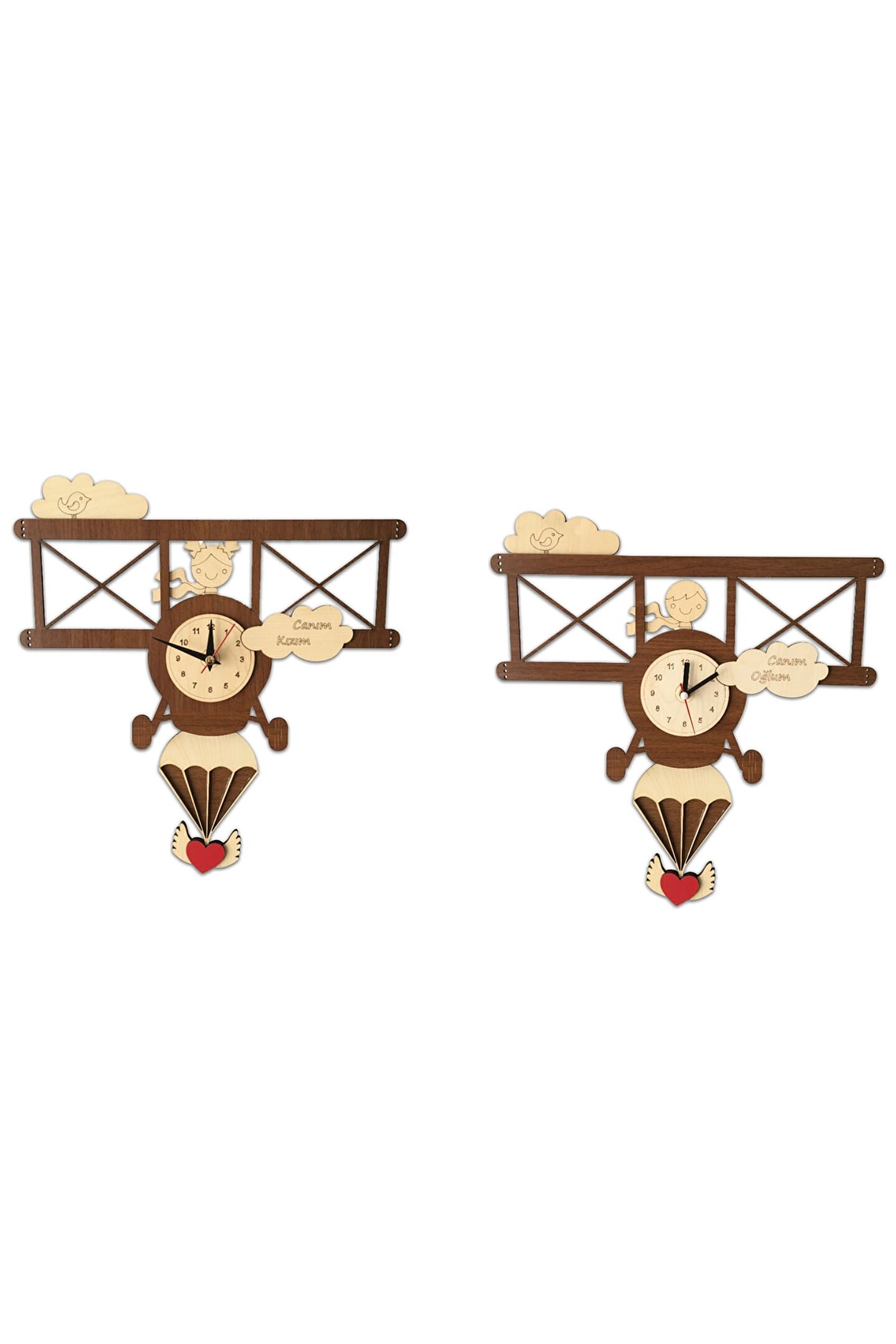Goodtime Canım Kızım Uçak Dekoratif Sarkaçlı Duvar Saati ; Lütfen taklitlerden kaçınınız. Saatin markası "goodtime" dır. ; Ürün özellikleri: ; - 1. Kalite Ahşap Mdf Malzemeden üretilmiştir. ; - Ürün tamamen el yapımıdır. (hand made) ; - 2 adet AA pil ile çalışır. ; - 1 adet pil, saati çalıştırır; diğer pil sarkacıhareket ettirir. ; - Her saniyede “Uçan Balon” sağa solahareket eder. ; - Kız ve erkek çocukları için 2 farklı modelimevcuttur. ; - Mekanizması yüksek kaliteli sessiz (quartz)çalışan akar saattir. ; - Saat üzerindeki akrep, yelkovan ve saniyemetal malzemedir. ; - Montaj şekli: Duvar çivisi ; - Montaja hazır özel askı aparatı ile bir çiviveya vidayla duvara kolayca sabitleyebilirsiniz. ; -Mutfak, oturma odası,çocuk odası,salon ve özel günlerinizde hediye olarak tercih edebileceğiniz dekoratif duvar saatidir. ; Ürün ebatları: ; Sarkaç Dahil Yükseklik: 41 cm ; Genişlik : 35,5 cm ; Derinlik : 4 cm ; Mdf Kalınlığı: 3 mm ;