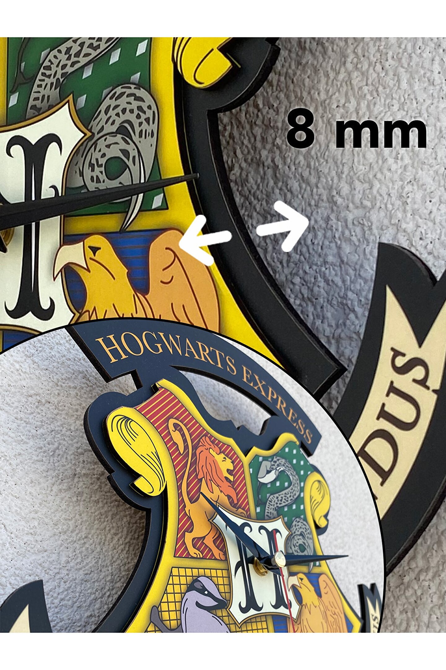 - Hogwarts Express temalı dekoratif duvar saati, Harry Potter hayranları için mükemmel bir hediye seçeneği.; - Retro tasarımıyla dikkat çeken bu saat, nostaljik bir atmosfer yaratırken mekanınıza büyü katıyor.; - Zarif ahşap malzemesiyle hem dayanıklı hem de estetik bir görünüm sunuyor.; - 44 x 27 cm boyutlarındaki bu saat, geniş ve okunaklı sayılarla zamanı kolayca takip etmenizi sağlıyor.; - Renkli ve canlı tasarımıyla dikkat çeken bu saat, herhangi bir odaya enerji katıyor.