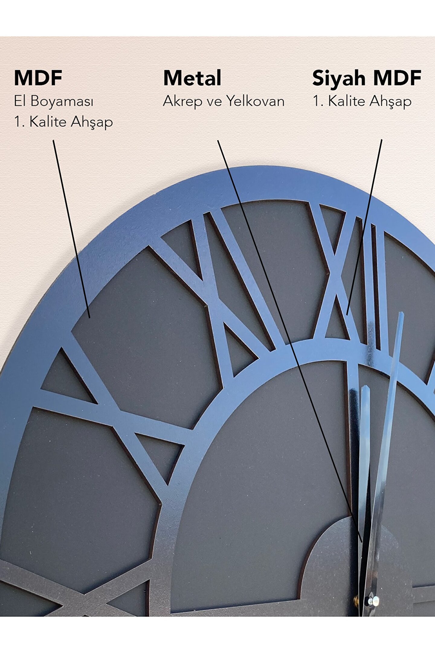 Goodtime Siyah Roma Dekoratif Duvar Saati 50x50 Cm ; Ürün özellikleri: ; - 1. Kalite Ahşap Mdf Malzemeden üretilmiştir. ; - Ürün tamamen el yapımı (hand made) ve elboyaması ile üretilmektedir. ; - 1 adet AA pil ile çalışır. ; - Mekanizması yüksek kaliteli sessiz (quartz)çalışan akar saattir. ; - Saat üzerindeki akrep ve yelkovan metalmalzemedir. ; - Montaj şekli: Duvar çivisi ; - Montaja hazır özel askı aparatı ile bir çiviveya vidayla duvara kolayca sabitleyebilirsiniz. ; Ürün ebatları: ; Saat Çapı : 50 cm dir. ; Derinlik : 5 cm ; Mdf Kalınlığı: 10 mm ;