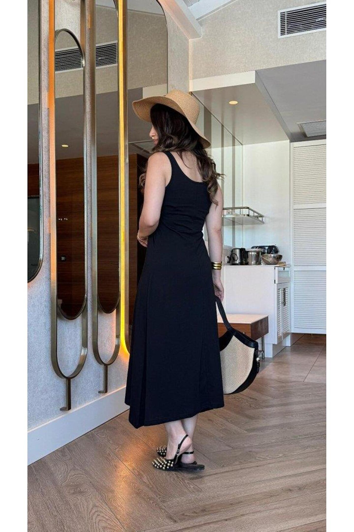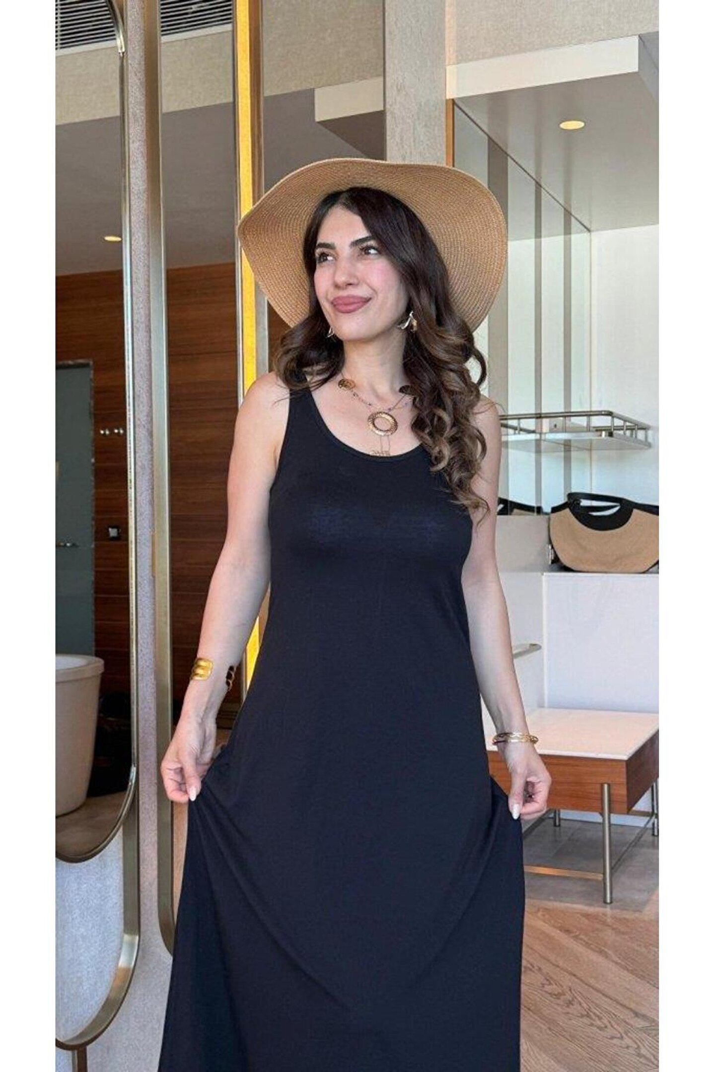 goopall Kadın Askılı Yuvarlak Yakalı Viskon Elbise