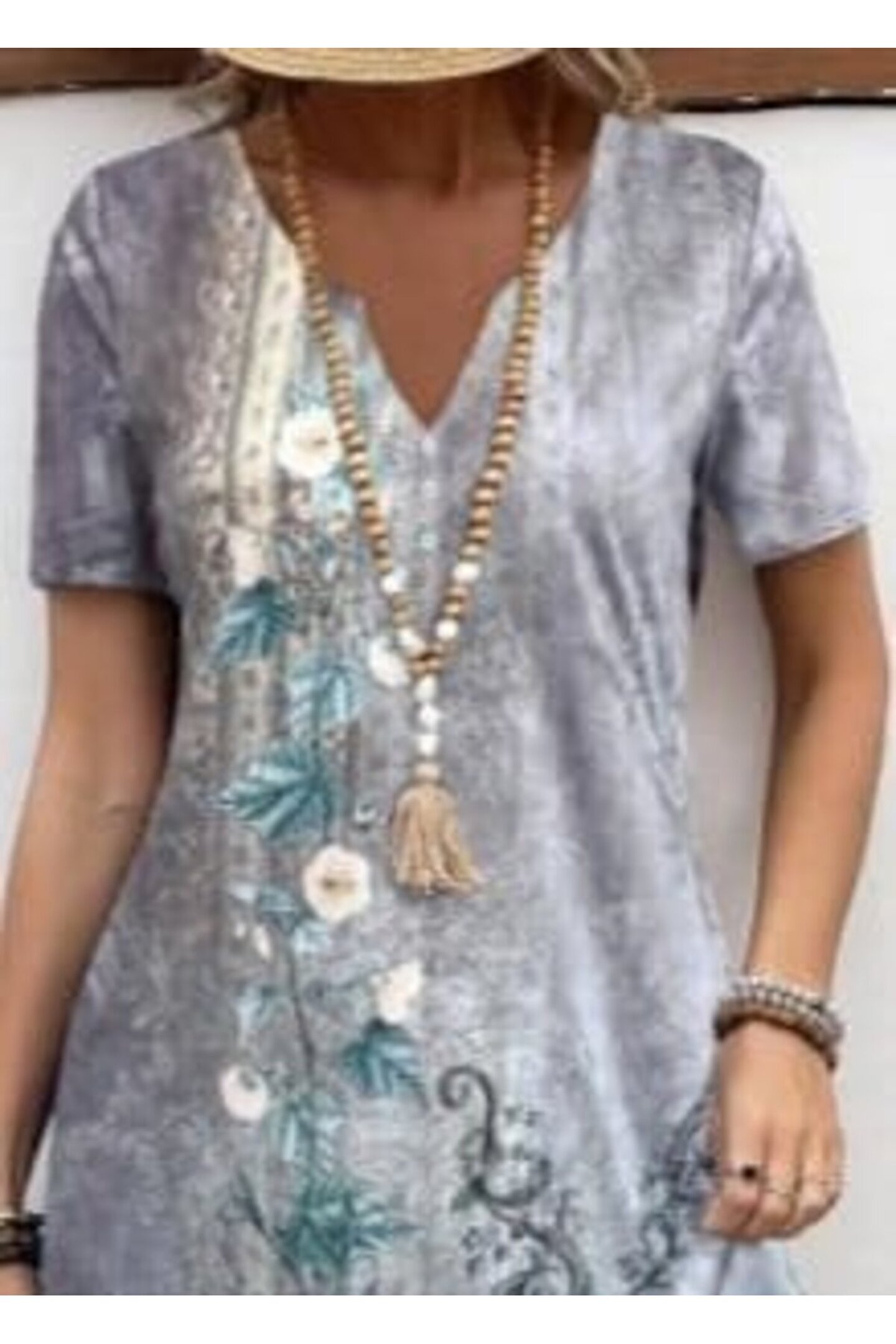 Kadın Kısa Kollu V Yakalı Desenli Süprem Elbise