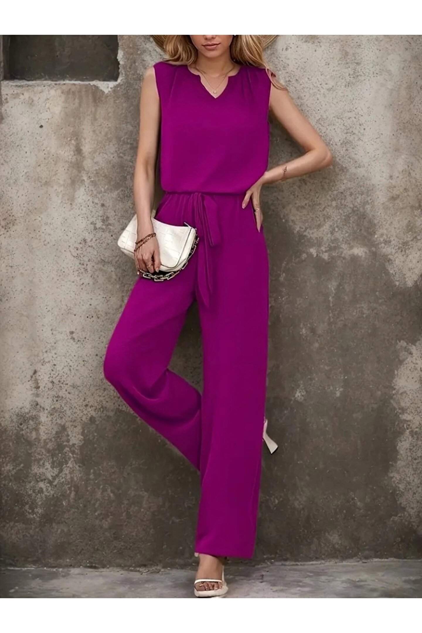 Kadın Kolsuz V Yakalı Aerobin Bluz Ve Belden Kuşaklı Pantolon Ikili Takım
