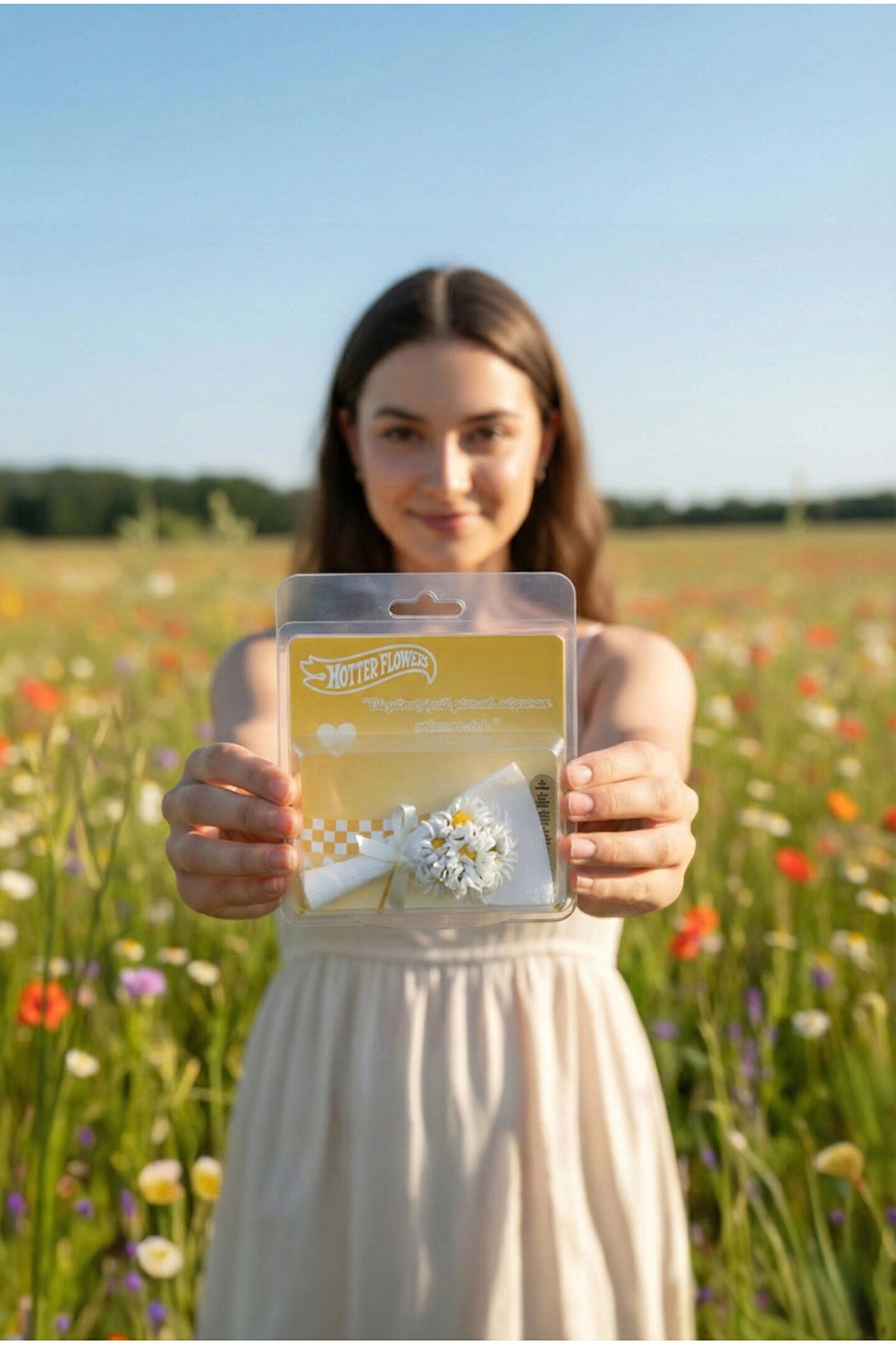 Gorgeous tarafından özel olarak tasarlanan bu koleksiyonluk aksesuar beyaz ve sarı tonlarının hâkim olduğu, özenle hazırlanmış yapay çiçek buketi ve şık süslemeleriyle dikkat çeker.; Ürün, görsel bütünlüğü bozulmadan sunulabilmesi için şeffaf koruma kutusu içerisinde ambalajlanmıştır.; Hem hediye olarak doğrudan sunulabilir hem de dekoratif amaçlı estetik bir tamamlayıcı unsur olarak kullanılabilir.;