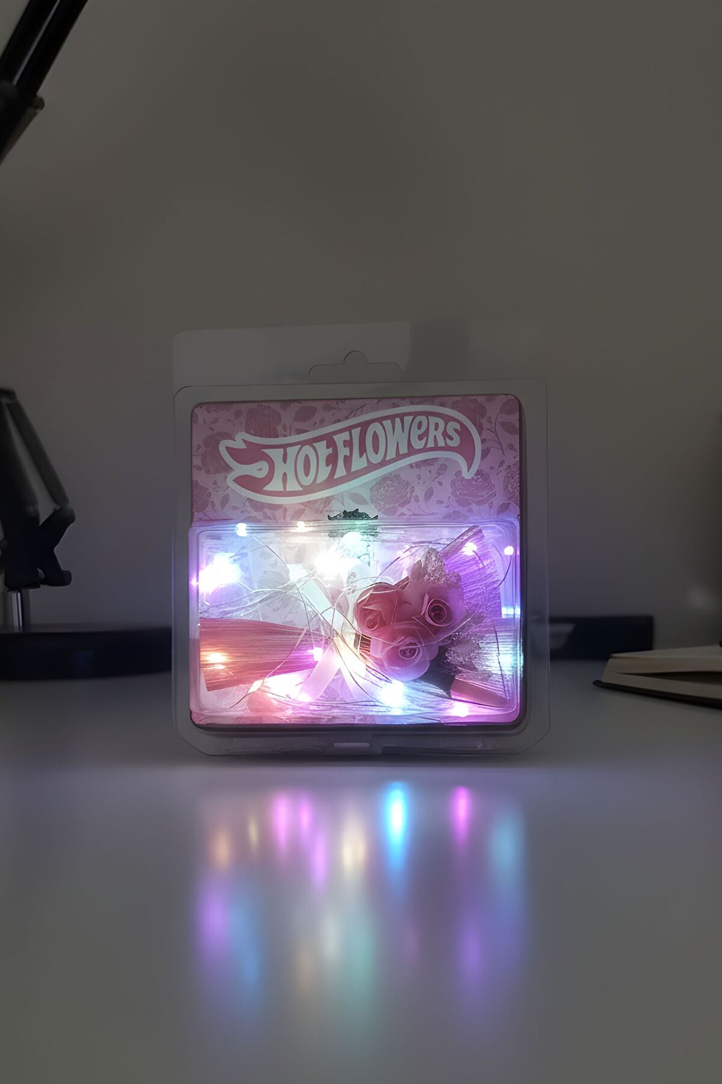 Gorgeous tarafından özel olarak tasarlanan bu koleksiyonluk aksesuar pembe tonlarının hâkim olduğu, özenle hazırlanmış yapay çiçek buketi ve şık süslemeleriyle dikkat çeker.; Ürün, görsel bütünlüğü bozulmadan sunulabilmesi için şeffaf koruma kutusu içerisinde ambalajlanmıştır.; Hem hediye olarak doğrudan sunulabilir hem de dekoratif amaçlı estetik bir tamamlayıcı unsur olarak kullanılabilir.;